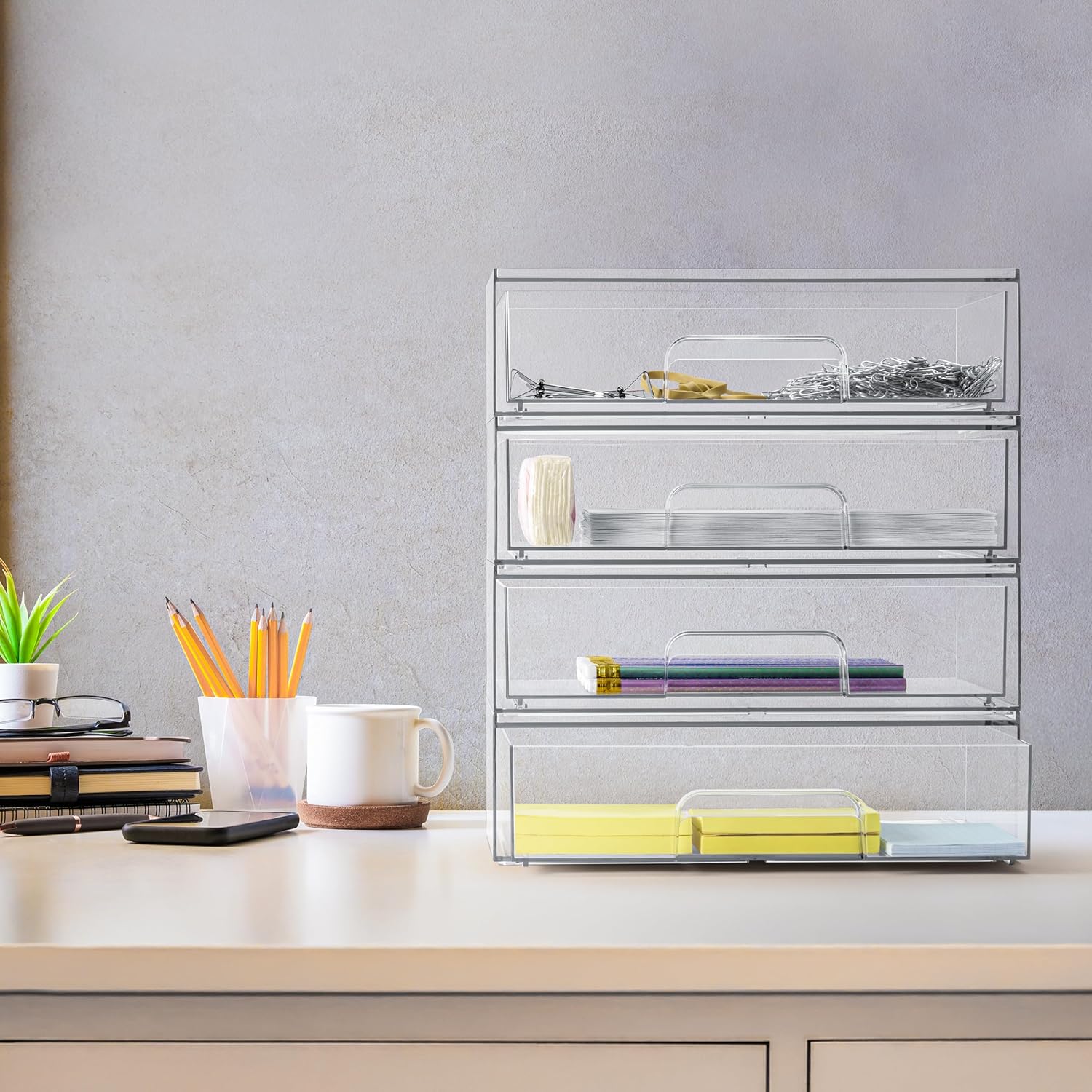 - Sorbus Clear Organizer Drawers: Stackable organizer for multifunctional storage. Customize your space with this acrylic bathroom organizer for endless organization.