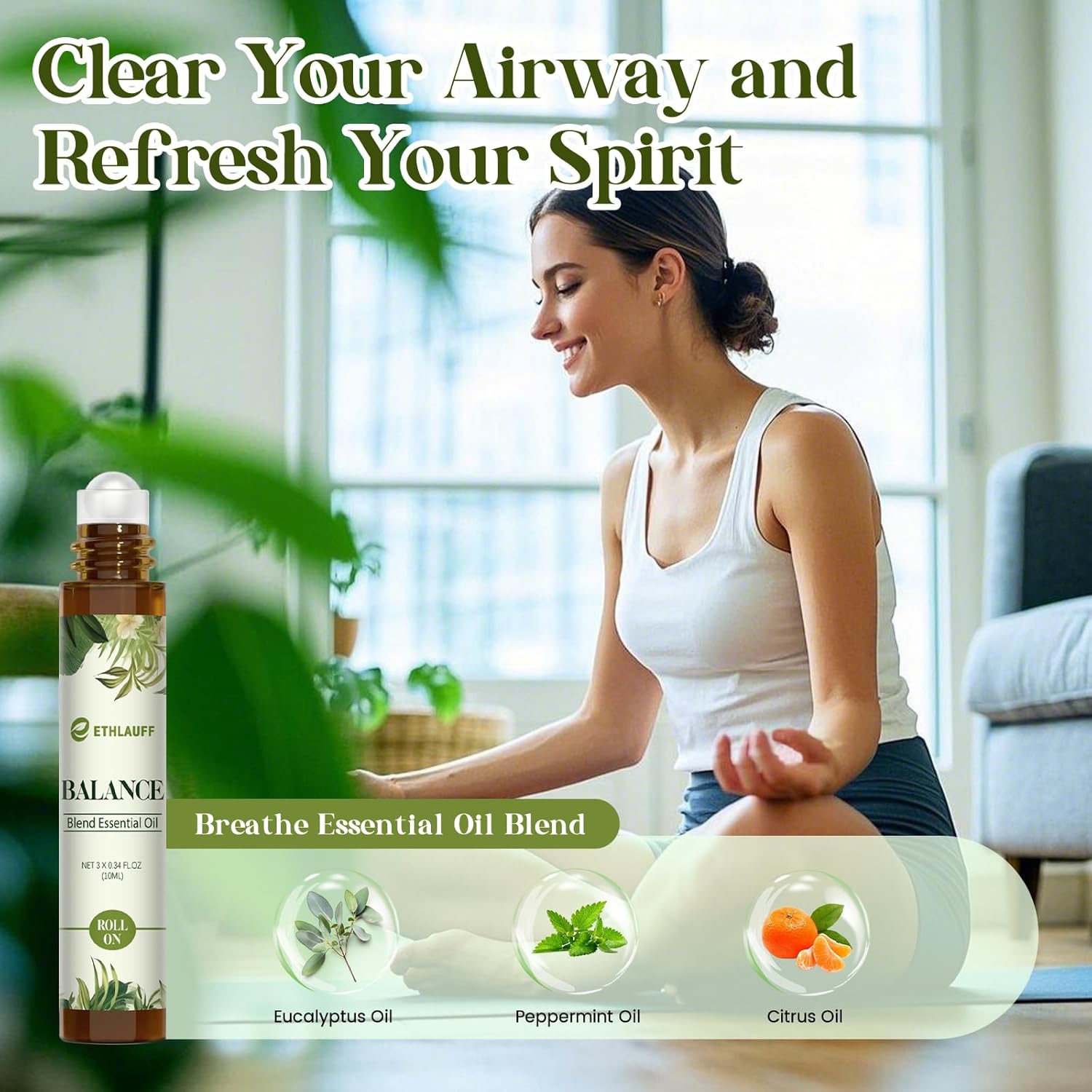 - Skin-friendly Essential Oil Blend Set: Achieve inner peace with our "Balance" formula, which combines soothing natural oils to help reduce stress and anxiety.The "Focus On" essential oil mix is designed to sharpen your mental clarity and boost concentration.The "Breathe" roll-on blend is expertly crafted to promote clear and easy breathing, making it perfect for those who seek relief from respiratory discomfort in a natural way.