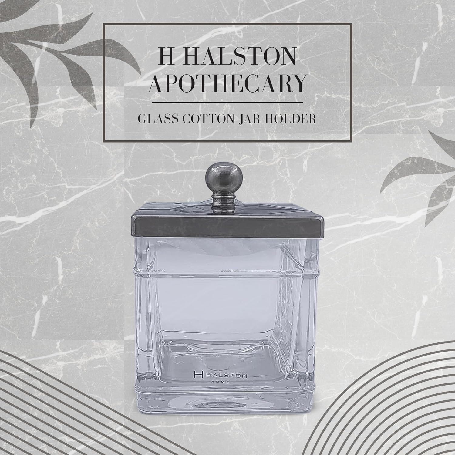 Apothecary Glass Cotton Jar Holder Brushed Nickel Stainless Steel Lid, Elegant Bathroom Storage Canister for Qtips, Cotton Balls, Floss, Makeup Organizer, Vanity Bathroom Organization