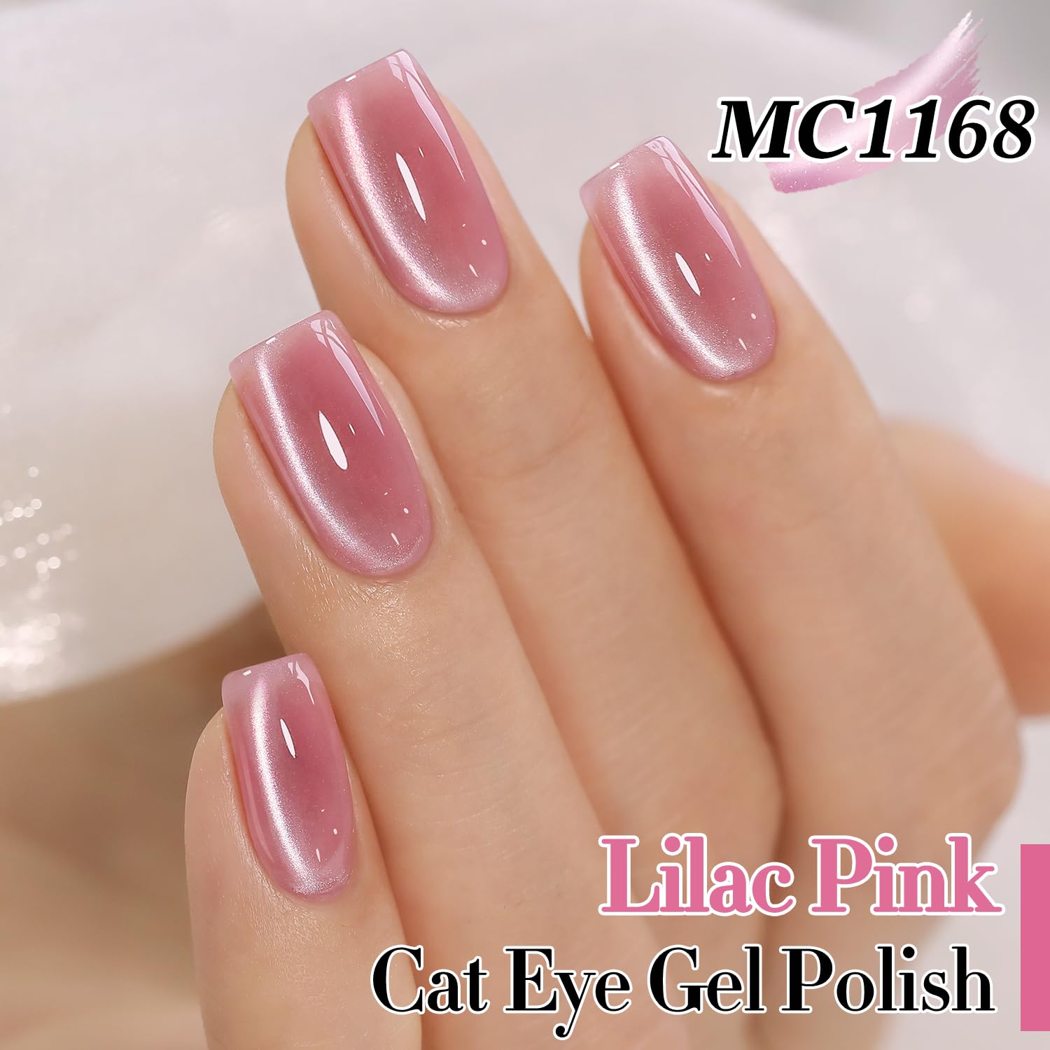 Double Rhythm 0.5 Oz Cat Eye Gel Polish with Magnet Same Color Same Bottle Holographic Glitter Shimmer Translucent Color Salon 15 ML Magnetic Nail Art (Lilac Pink-MC1168)