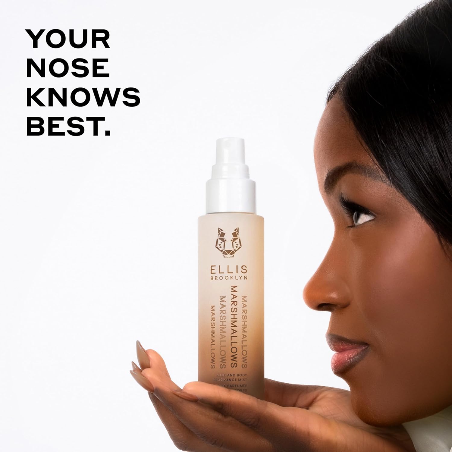 Ellis Brooklyn MARSHMALLOWS Hair And Body Fragrance Mist - Gourmand Perfume Mist with Marshmallow, Caramel Accord, & Milky Musks, Vegan Perfume, Made In The USA, 100ml 3.38 Fl Oz