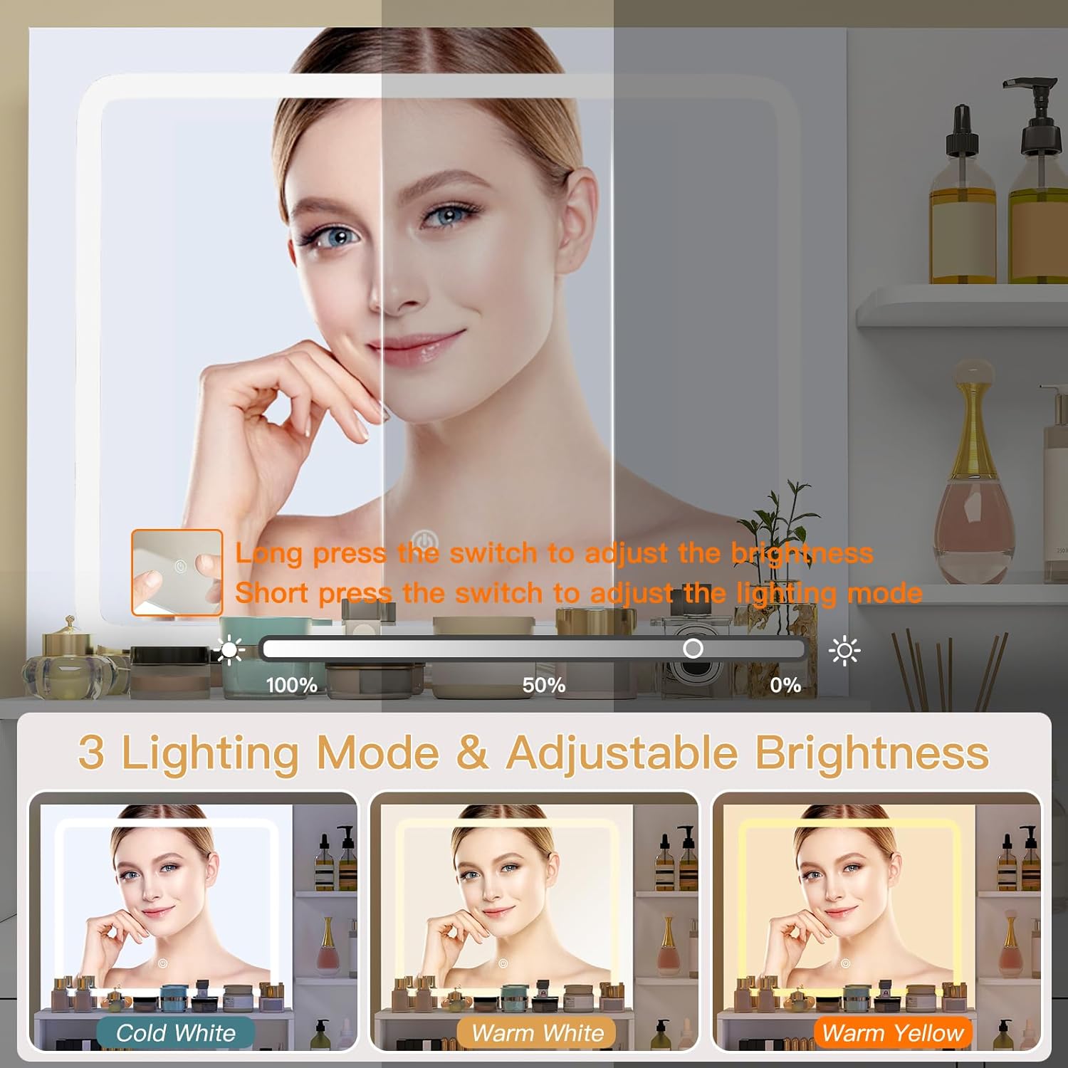 - ăSee Yourself Beautifully In the MirrorăNow you never have to worry about having inadequate lighting when applying makeup! The vanity table features 10 LED light bulbs with 3 color modes(cool white, warm white or warm yellow), and the brightness of each color of light can be adjusted to meet your needs for different brightness when applying makeup