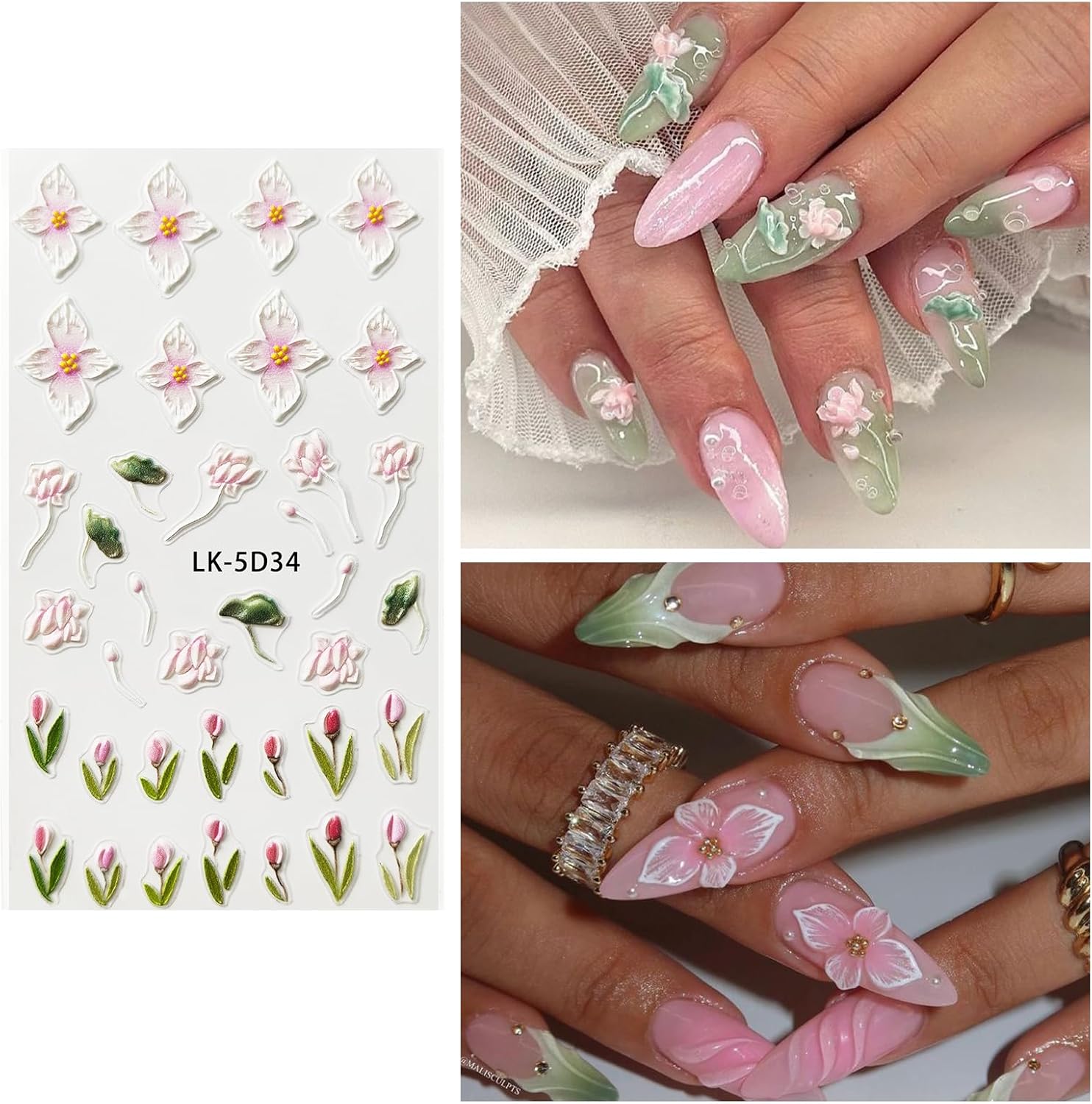 - ăExquisite DesignăOur nail stickers are designed with a variety of floral patterns such as plumeria, peach blossom, tulip, etc., allowing you to create salon-quality manicures at home