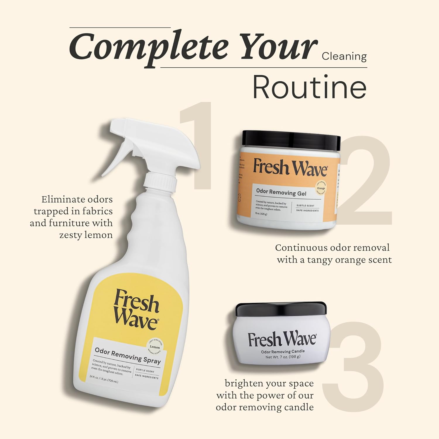 Fresh Wave Lemon Scent Odor Eliminator Spray & Air Freshener, 24 fl. oz. | Odor Absorber for Home, Furniture, Fabrics & Trash | Safer Odor Relief