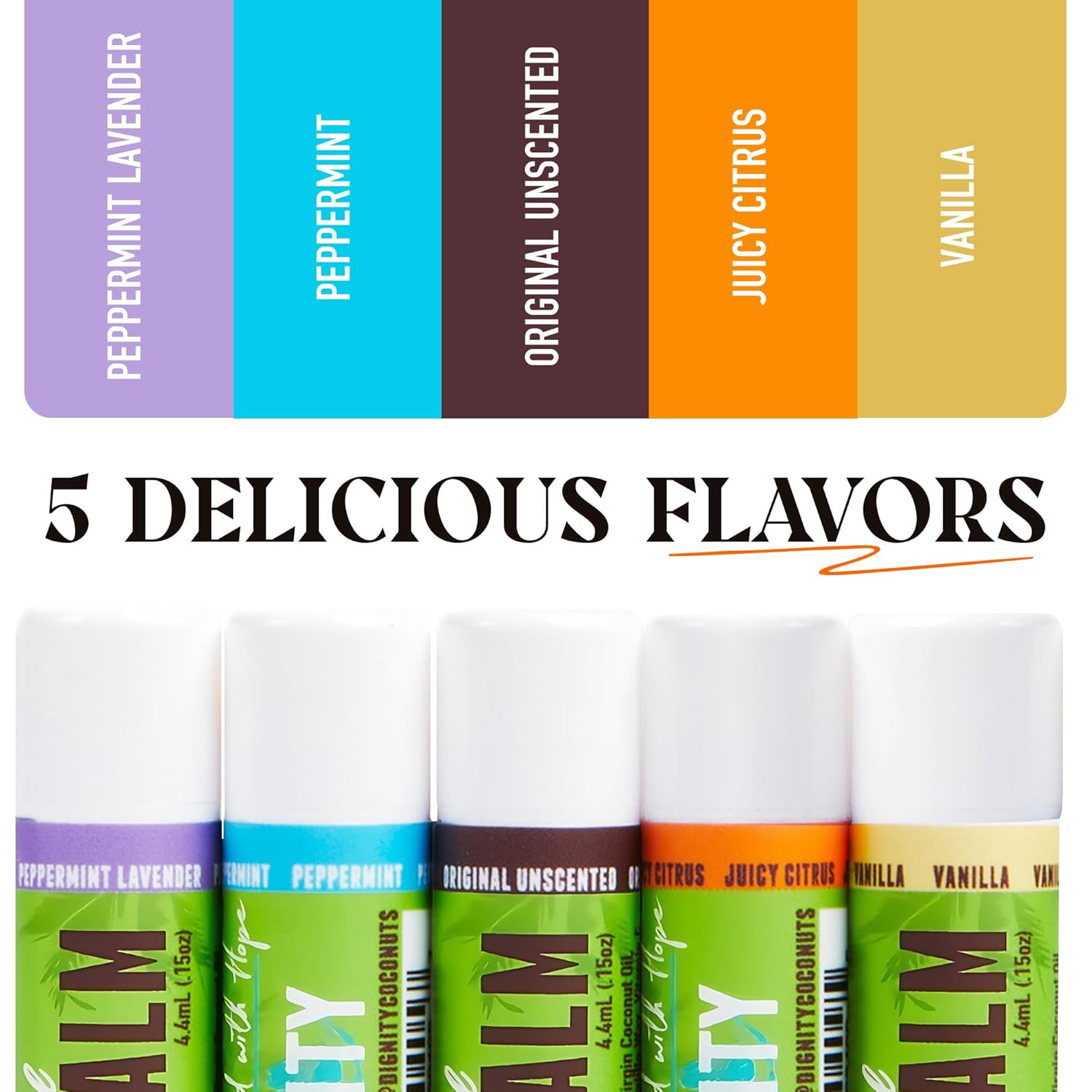 - Hint of Variety, Flavor, and Fun: Enjoy five soothing lip balms in a variety of subtle flavors like lavender peppermint, juicy citrus, peppermint, vanilla, and unscented, made with essential oils for a gentle, refreshing touch
