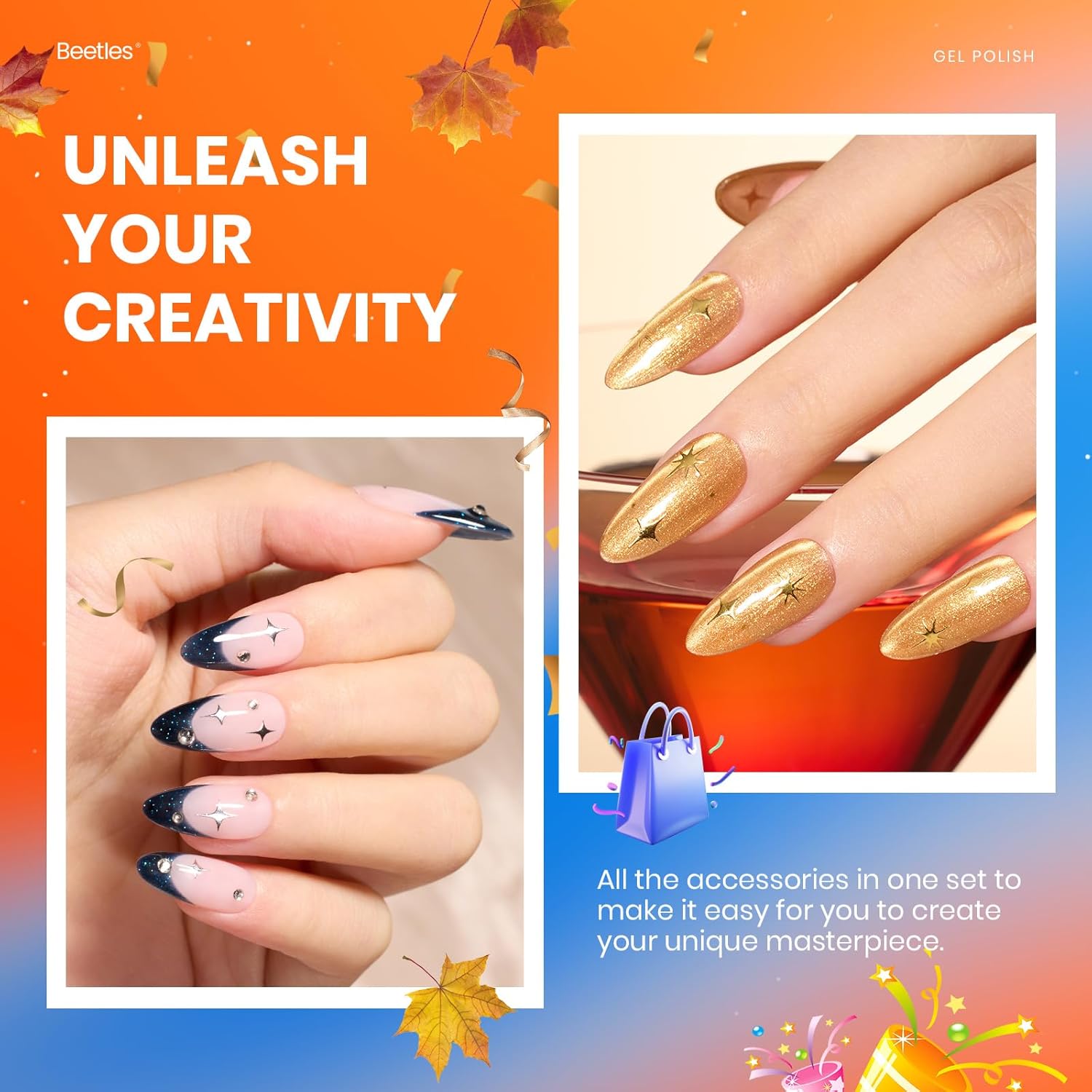 - Ideal gift for Her: The Beetles nail gel polish kit comes in a seasonal gift box, suitable for any holiday or special event, such as a birthday anniversary Valentine's Day Gift for Women. No more struggling to decide which colors to select. Solid and glitter nail designs can be freely created with these fall color gels. Elevate your holiday style with the gift set gel nail polish set.