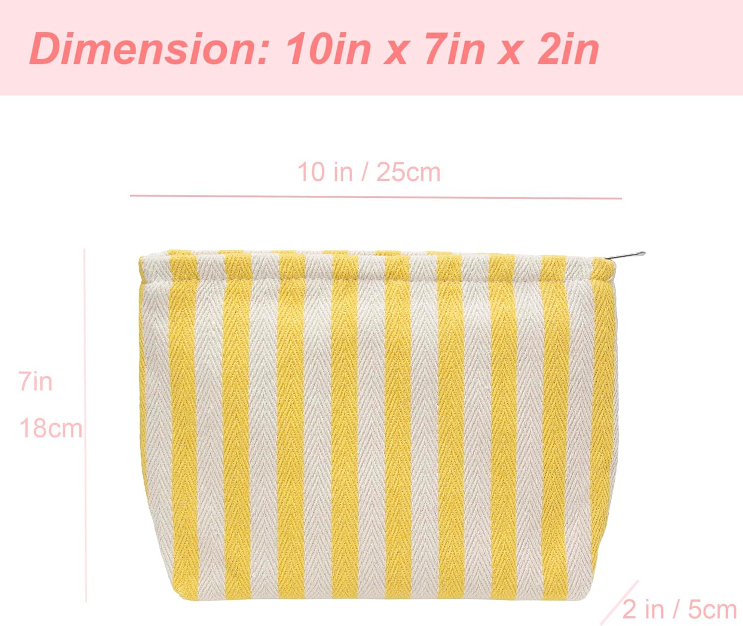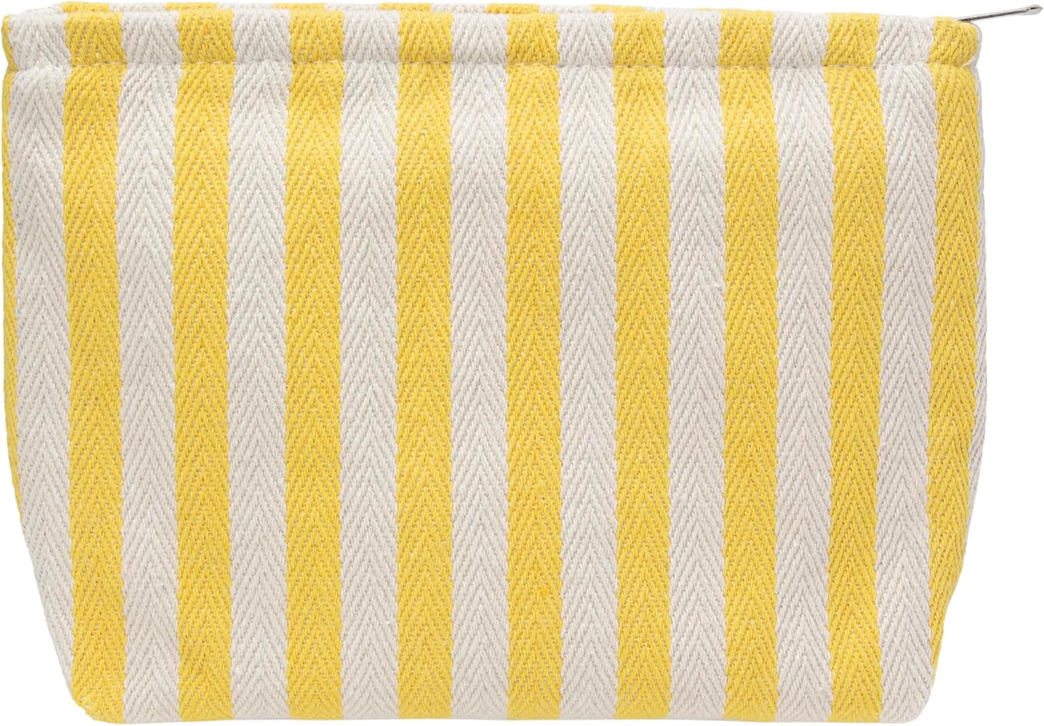 PAZIMIIK Makeup Bag Large Cotton Zipper Pouch for Purse Travel Canvas Make Up Organizer for Women Cosmetic,Stripe Yellow
