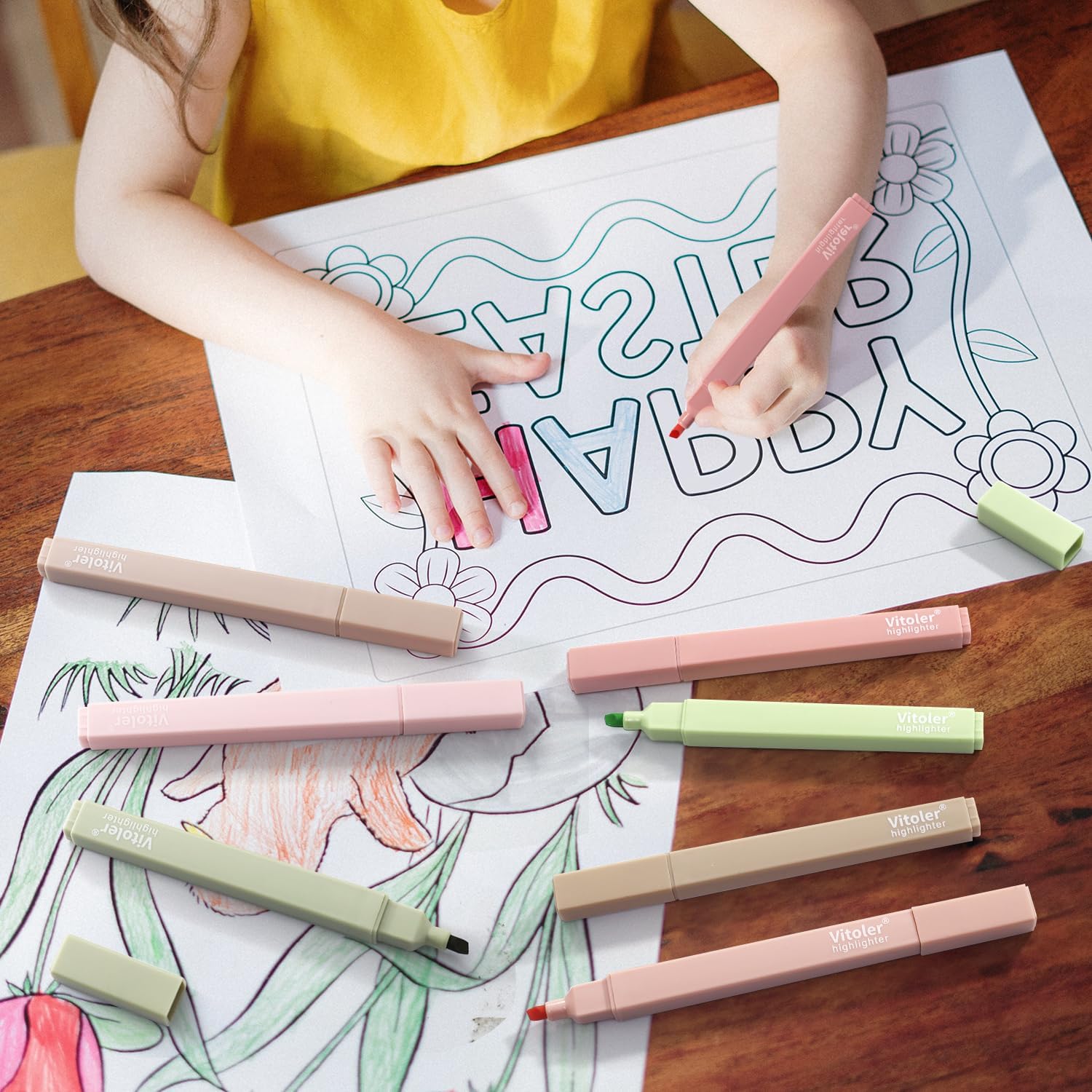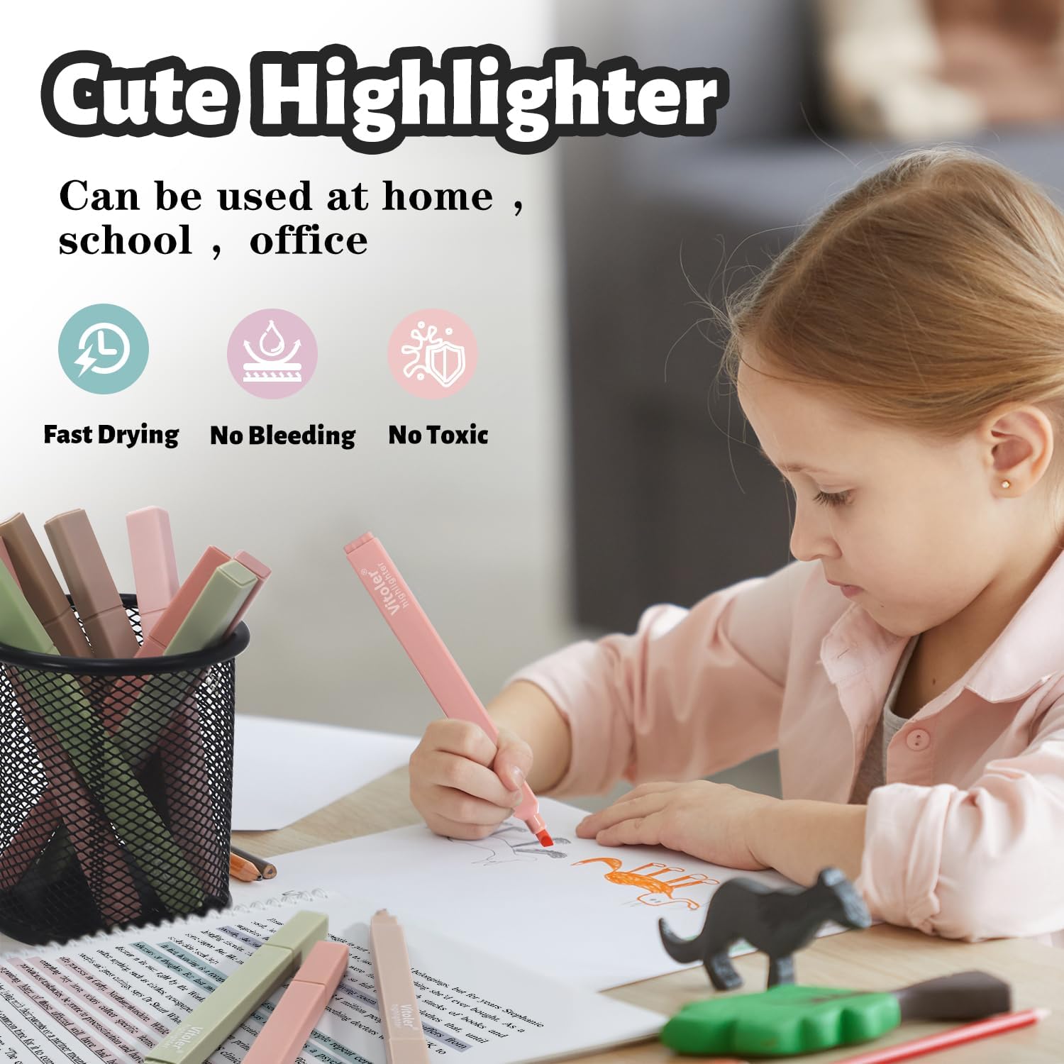 Vitoler Highlighters Assorted Colors,8pcs No Bleed Bible Chisel Tip Highlighters,Aesthetic High lighters for School Office Supplies