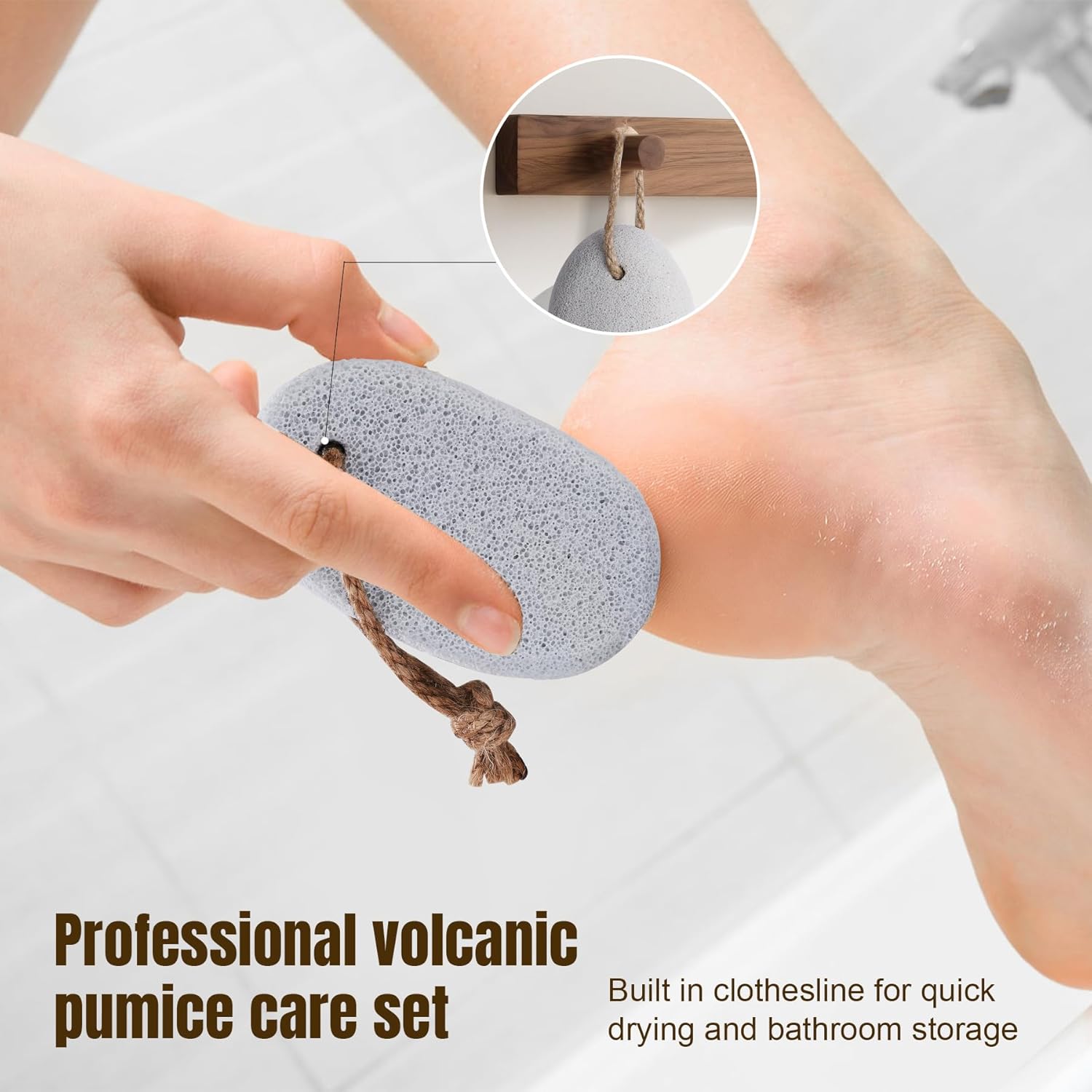 - 【Approved Durability】Resists crumbling even with daily use. Pro Tip: Soak feet 5 mins before use, then glide stones in circular motions. Rinse and air-dry on the rope to extend lifespan.