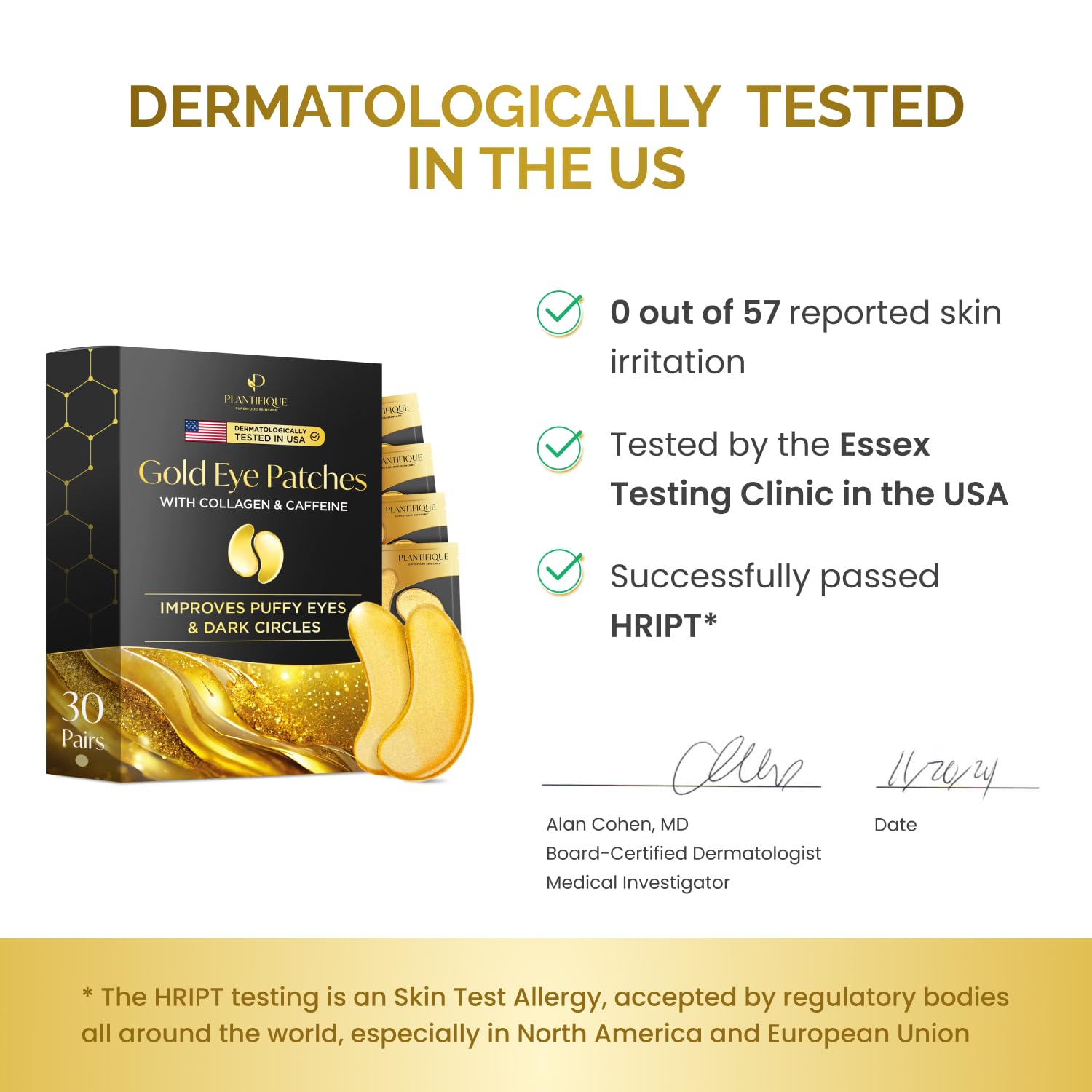 PLANTIFIQUE Gold Eye Patches for Puffy Eyes | 30 Pairs | Gifts | Under Eye Masks for Dark Circles | Puffiness Eye Gels | Eye Mask Skincare