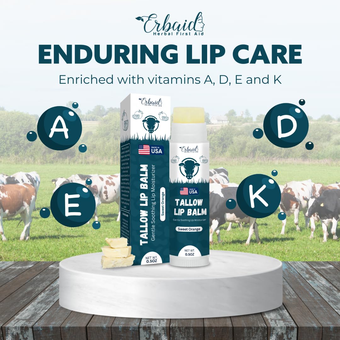 - INTENSELY HYDRATING FORMULA: Immerse your lips in moisture with our grass-fed organic beef tallow lip balm with orange flavor. Crafted with natural fats, akin to those in human skin, it maintains your lips' moisture barrier for enduring hydration and velvety softness.