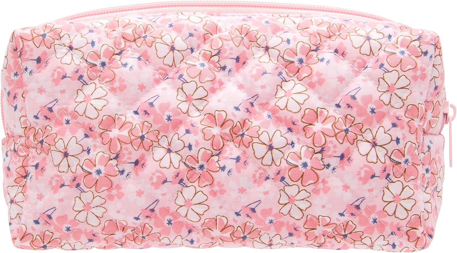 PAZIMIIK Vintage Quilted Makeup Bag Cosmetic Pouch for Brushes Pencils and Travel Make Up Accessories for Women and Girls Floral Pink