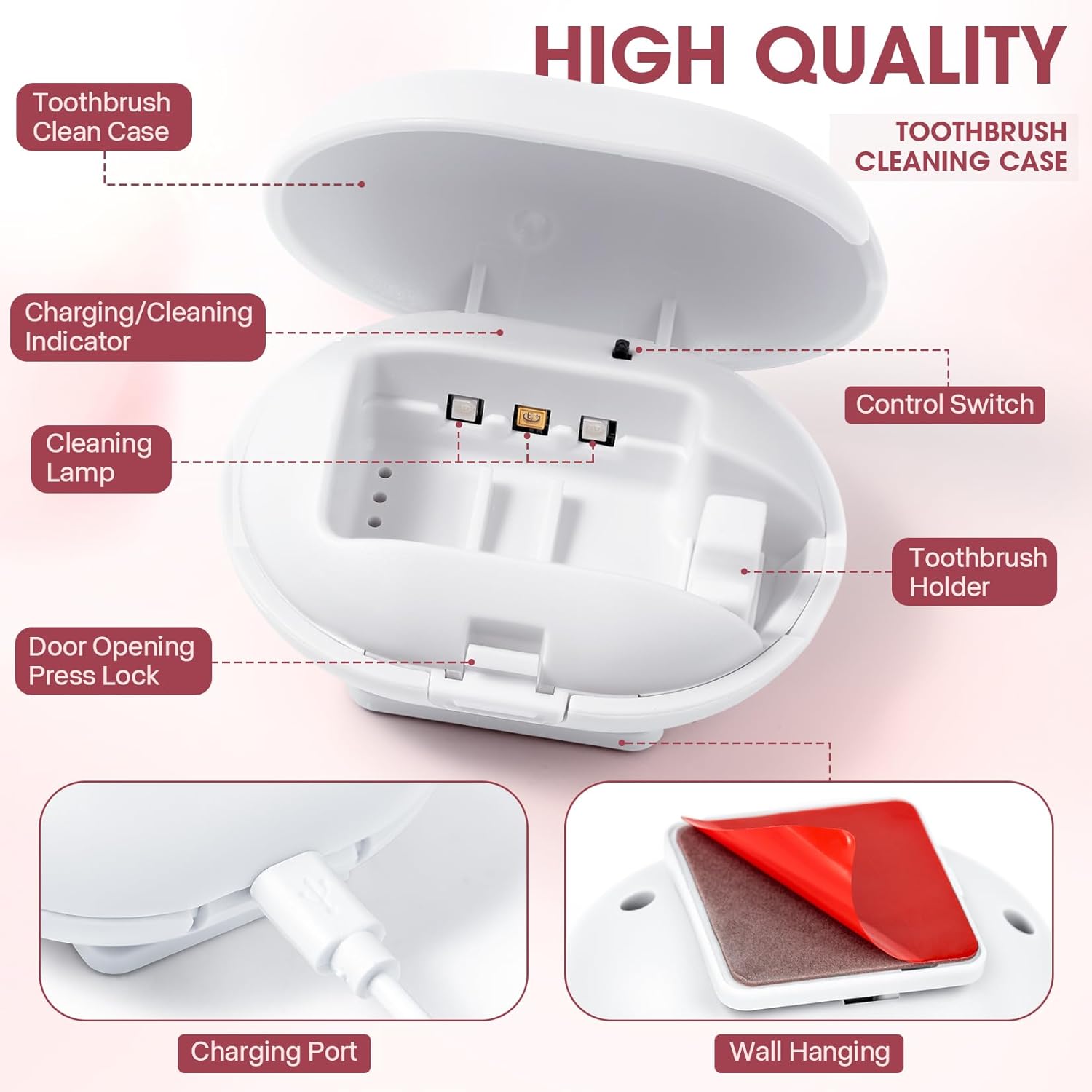 - 🦷【99.9% Sterilization Rate】:360° intelligent sterilization, effective sterilization up to 99.99%, 5-minute timer, one-key operation start, purification and cleaning of the toothbrush head, and even purification and cleaning to the toothbrush bristles of the hair gap, effectively solve the problem of toothbrush contamination, long-term use to help maintain a healthy oral environment