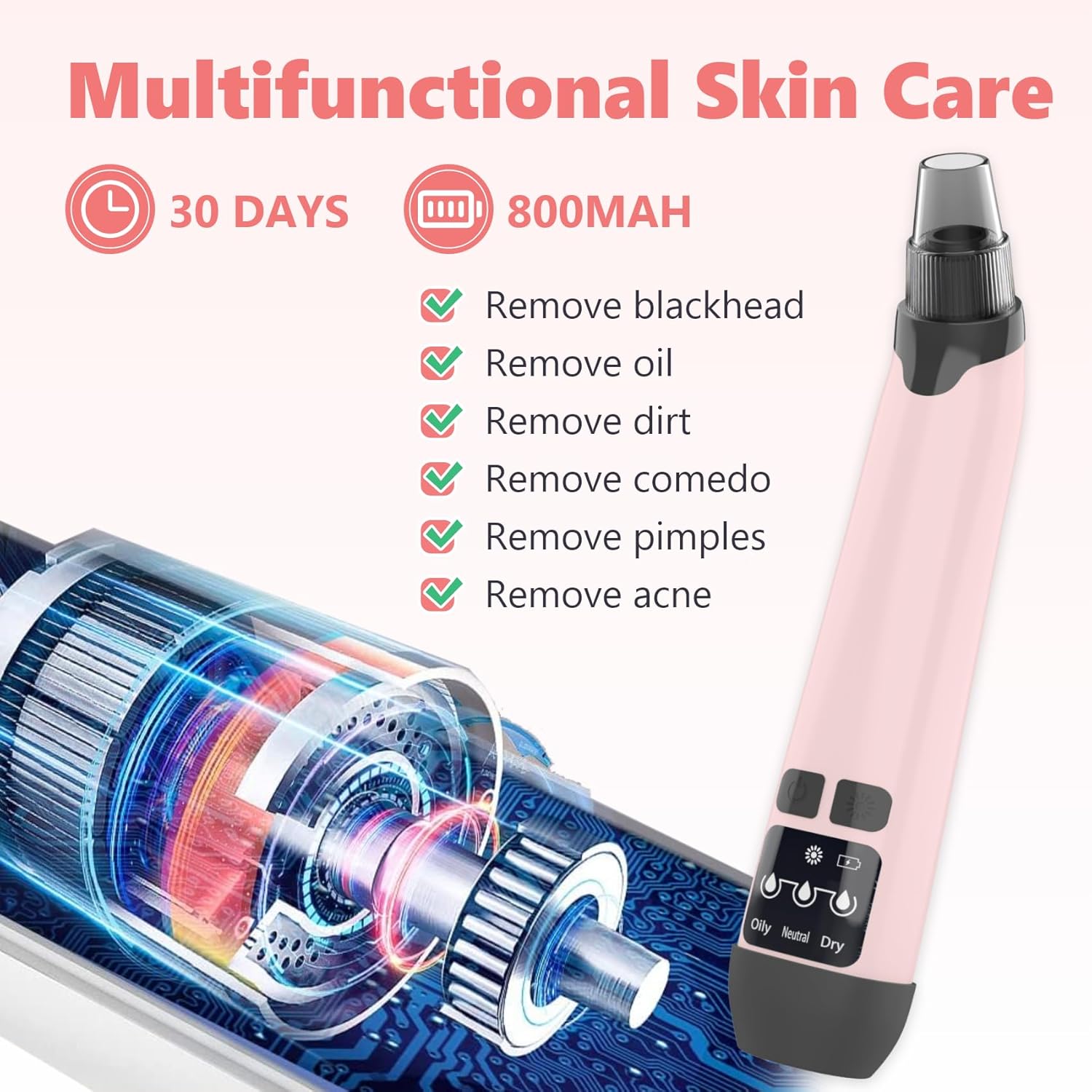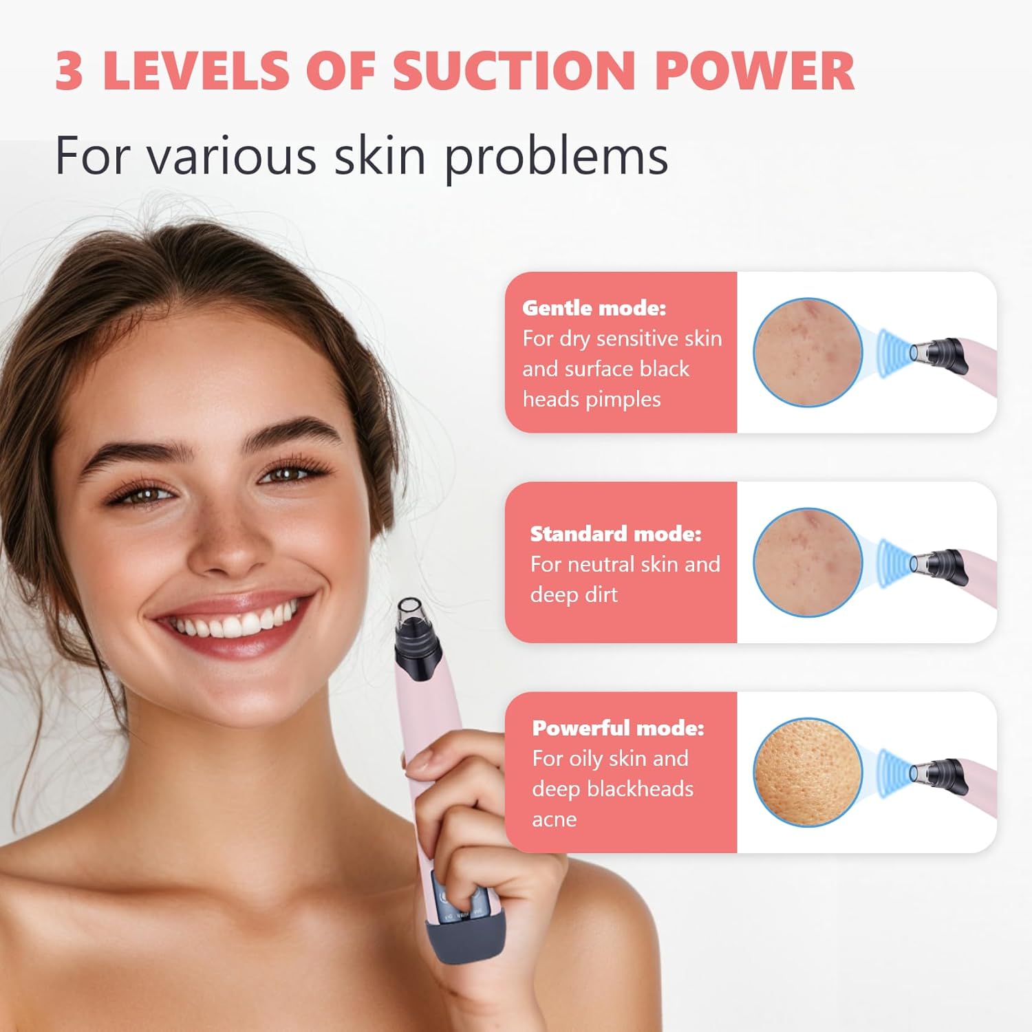- 【 Blackhead Remover Tools 】Our upgraded blackhead vacuum provides powerful yet gentle deep facial cleansing. It effectively removes blackheads, whiteheads, dead skin, acne,oil and cosmetic aresidue.