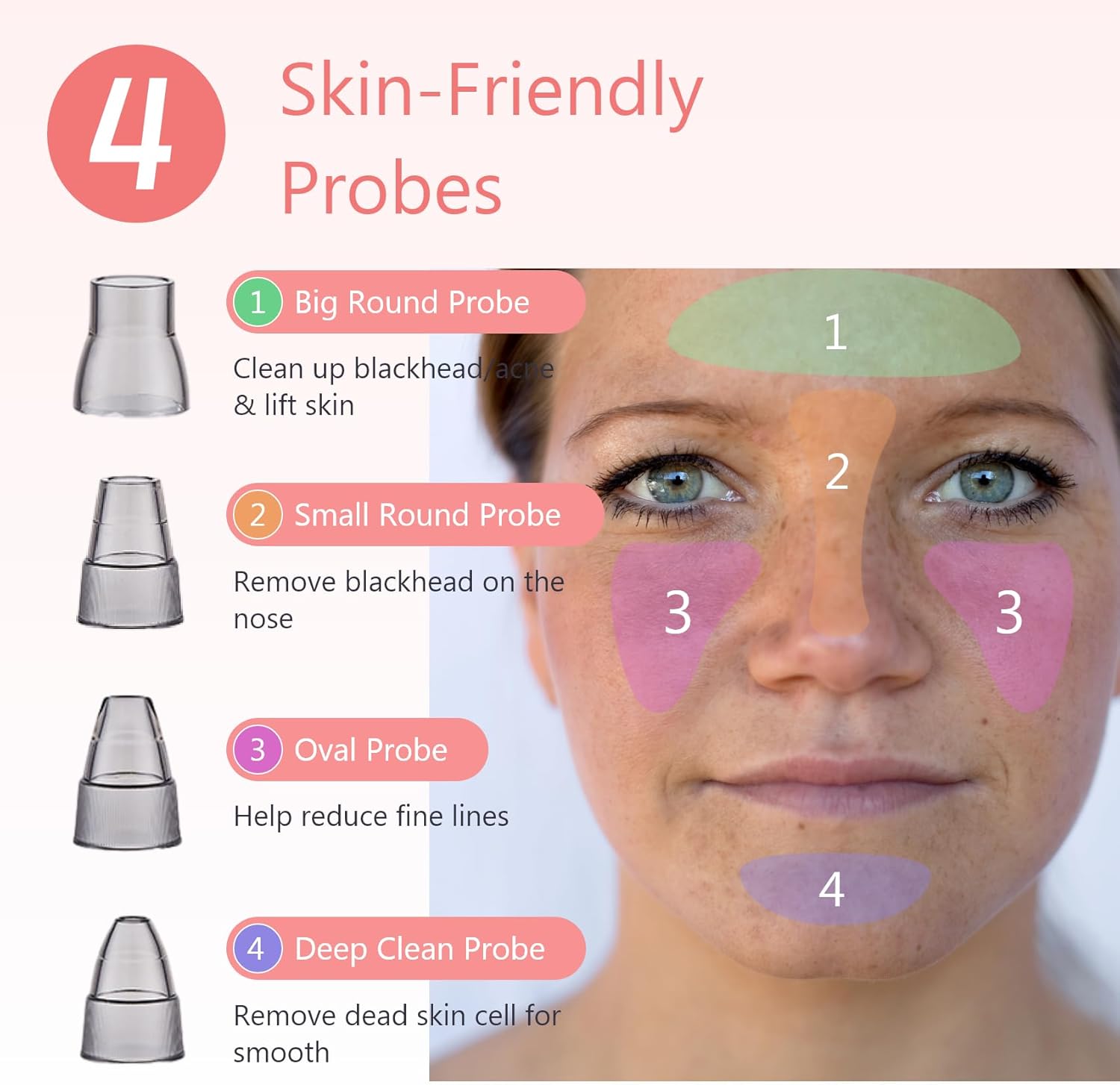 - Tips:Our Blackhead Remover Vacuum with 4 pcs interchangeable suction heads and includes 4 pcs bonus pimple popper tools. They can be rinsed with water to keep them clean