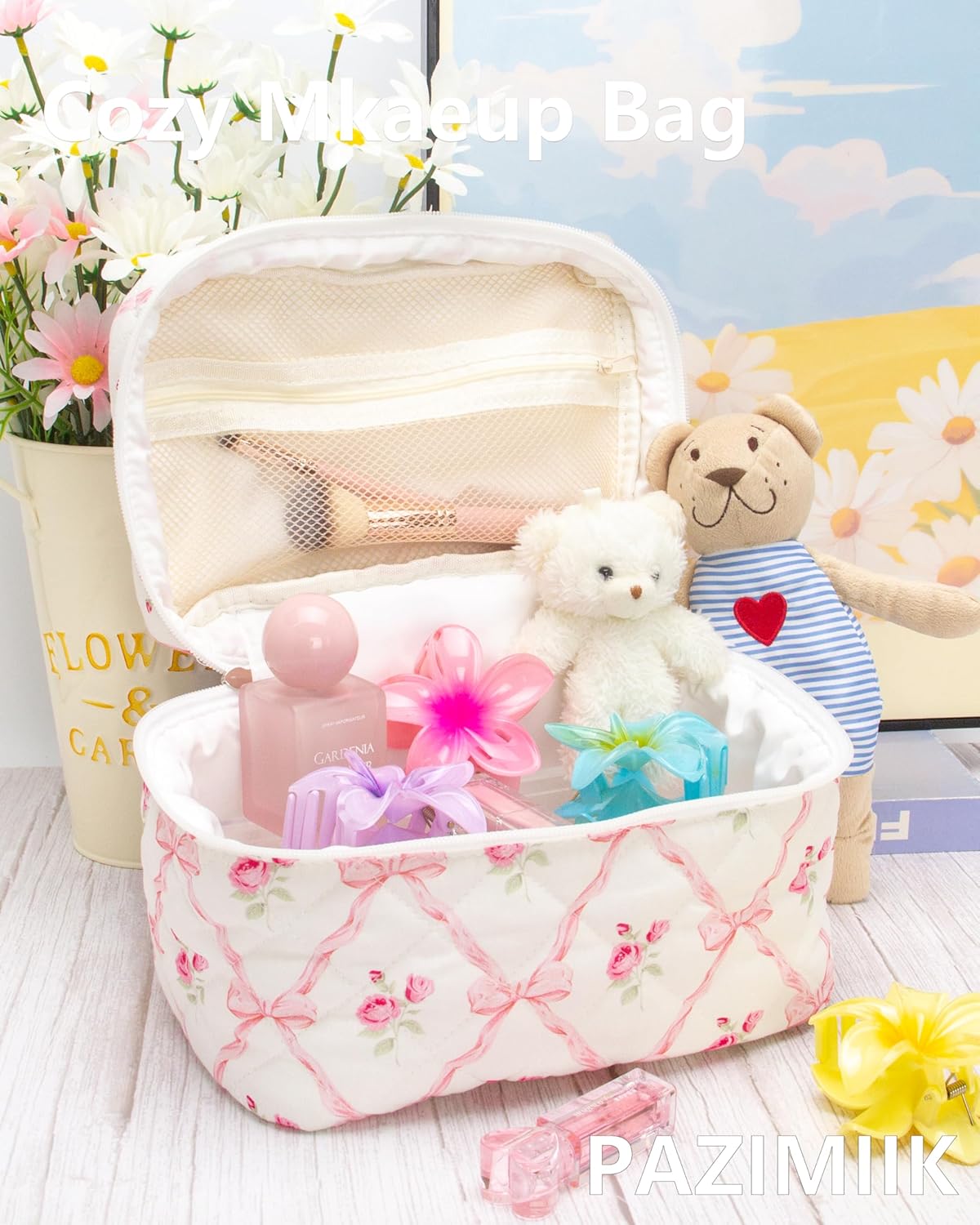 - Softness and Style: The quilted cotton exterior offers a soft and comfortable texture, combining style with functionality for your daily makeup needs.