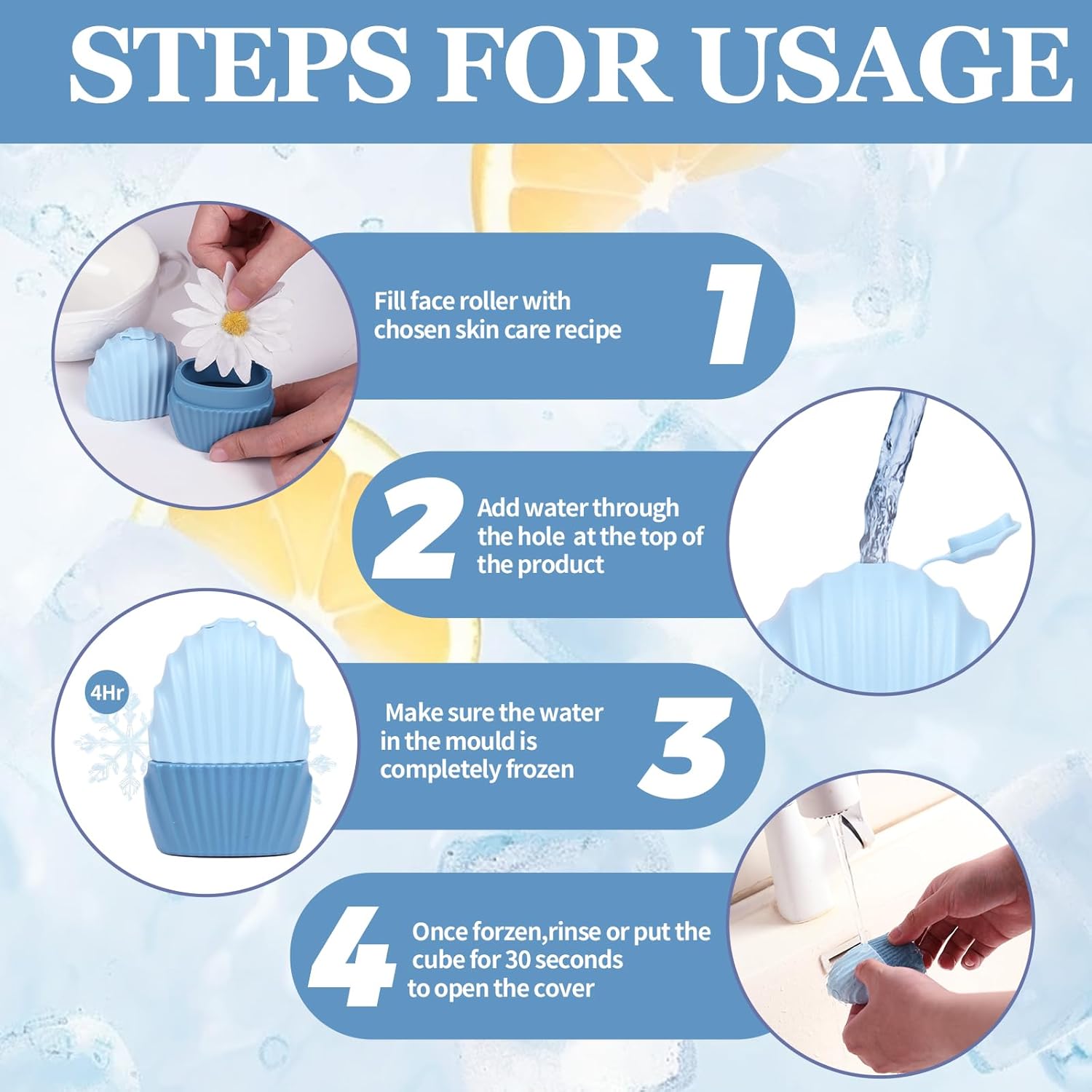 Ice Cube Roller for Face,Eyes and Neck,Reusable Silicone Ice Mold Mermaid Shell Shape for Shrink Pores Anti Wrinkle and Skin Beauty Care,Reduce Migraine Pain,Gua Sha Face Massage Tools (Blue)