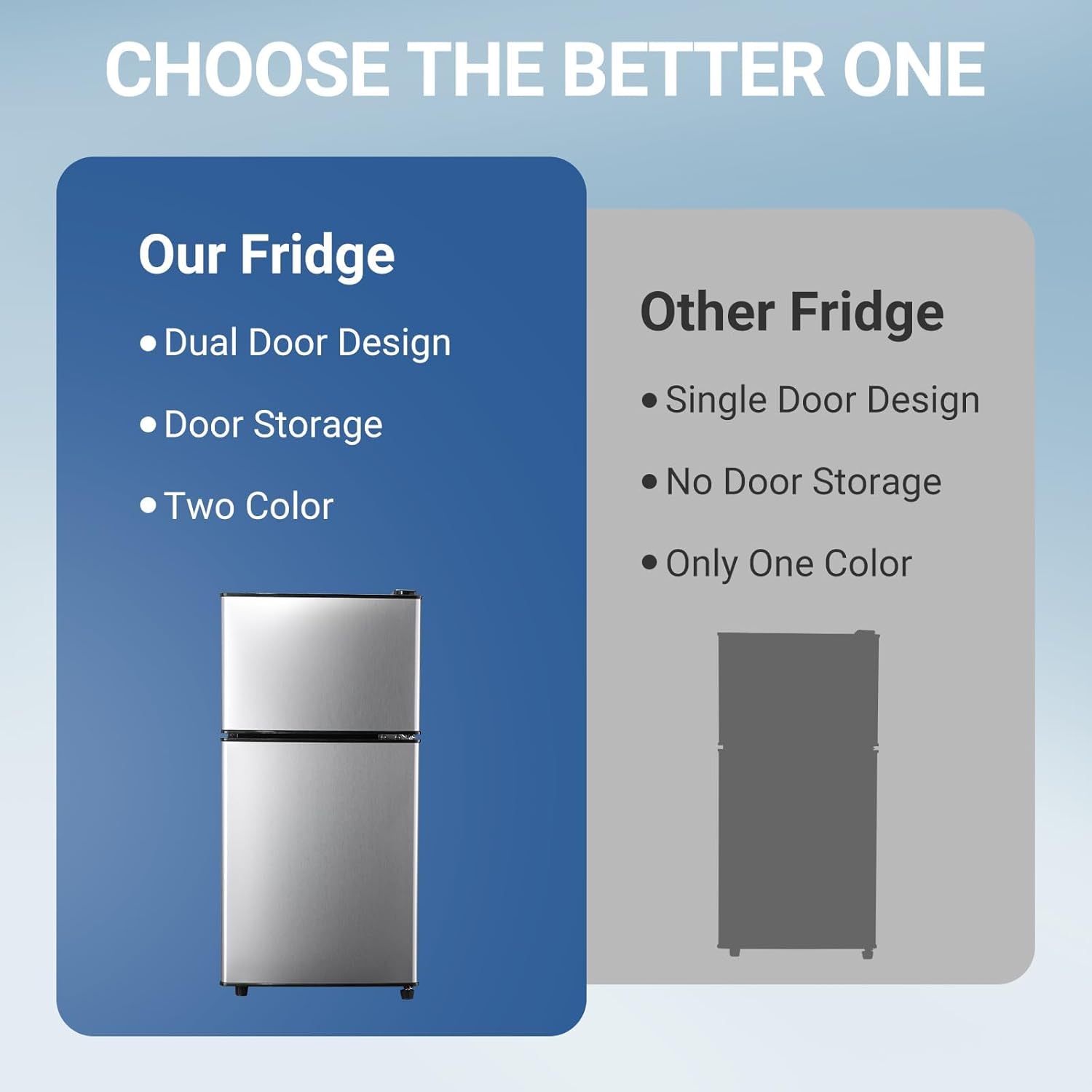 Mini Fridge with Freezer, 3.6 Cu. Ft. Adjustable Thermostat Compact Fridge with Freezer,Office Mini Refrigerator with Freezers, Small Size Dorm Fridges for Apartment,Dorm,Kitchen,Office,Silver