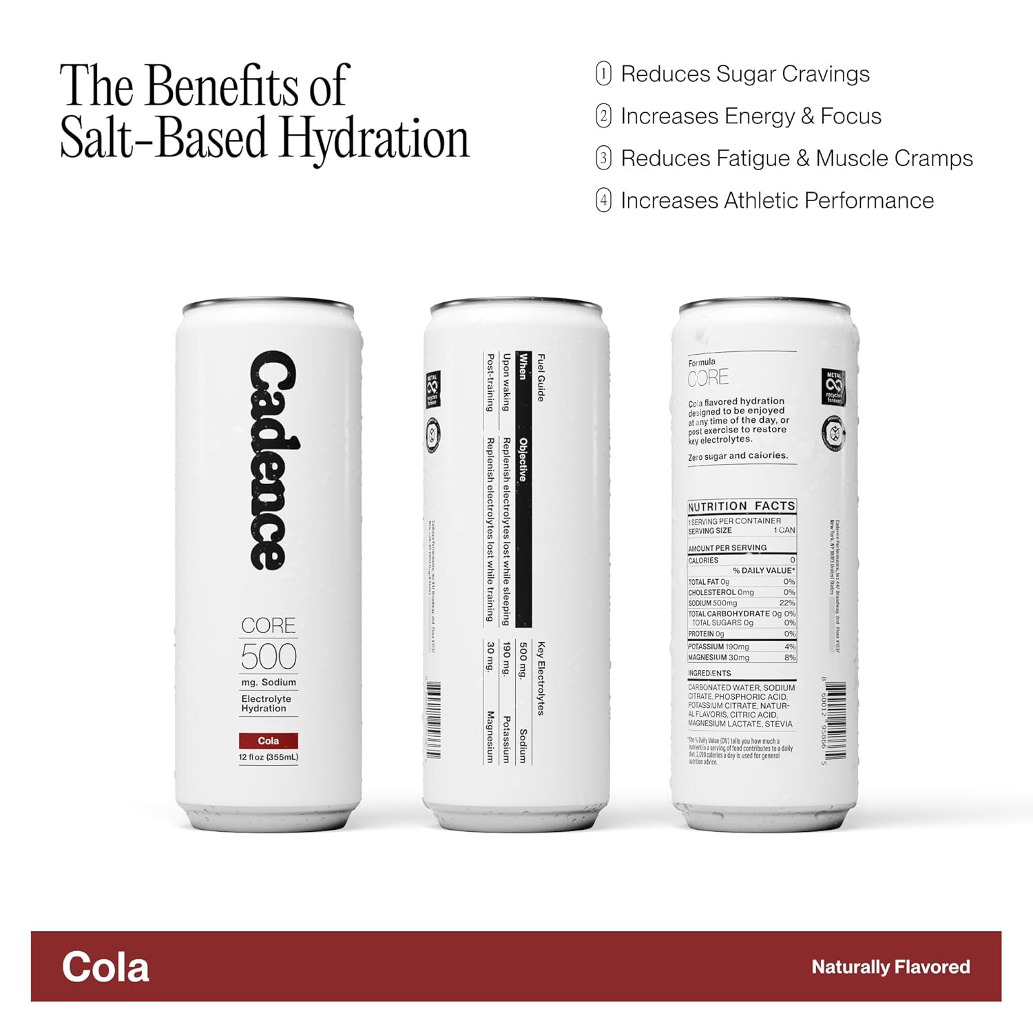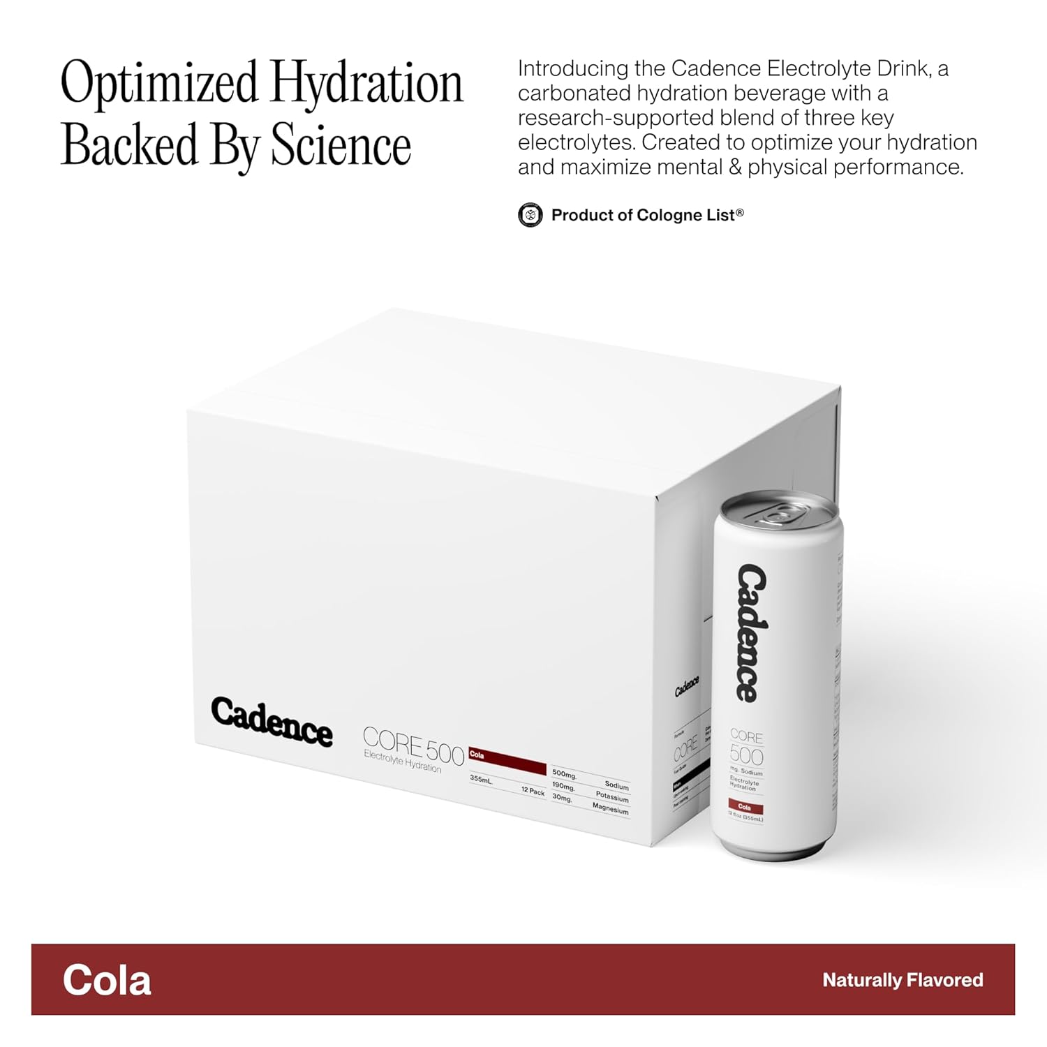 Cadence Electrolyte Drink - Crisp Cola Flavor, 355ml x 12 | Science-Backed Hydration | Zero Sugar, Zero Caffeine | Vegan, Keto & Paleo Friendly | Sodium, Potassium & Magnesium for Performance & Recovery