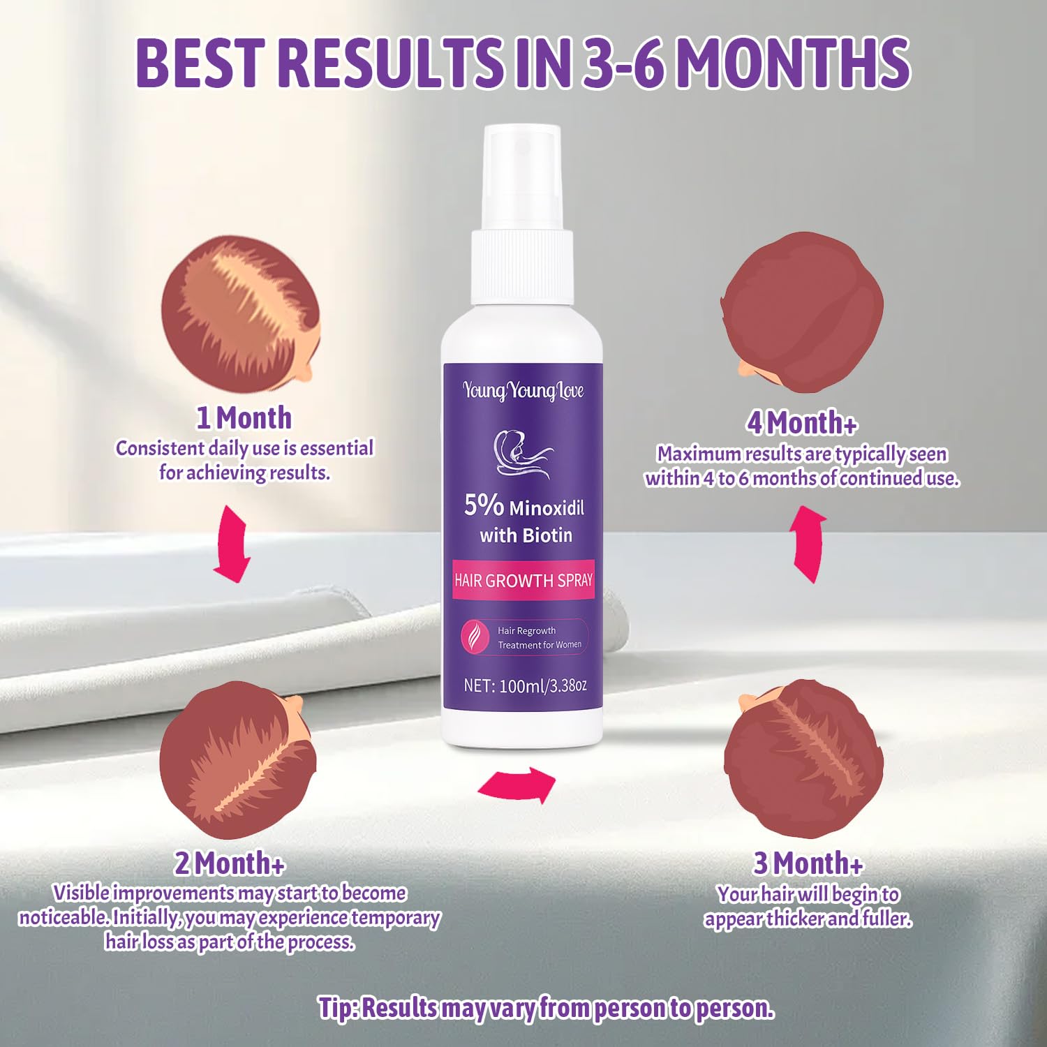 3.38 fl.oz - 5% Minoxidil for Women Hair Growth, Minoxidil Spray with Biotin for Thicker, Stronger, Fuller & Healthier Hair, Hair Regrowth Treatment for Reduce Hair Loss & Thinning, for All Hair Types
