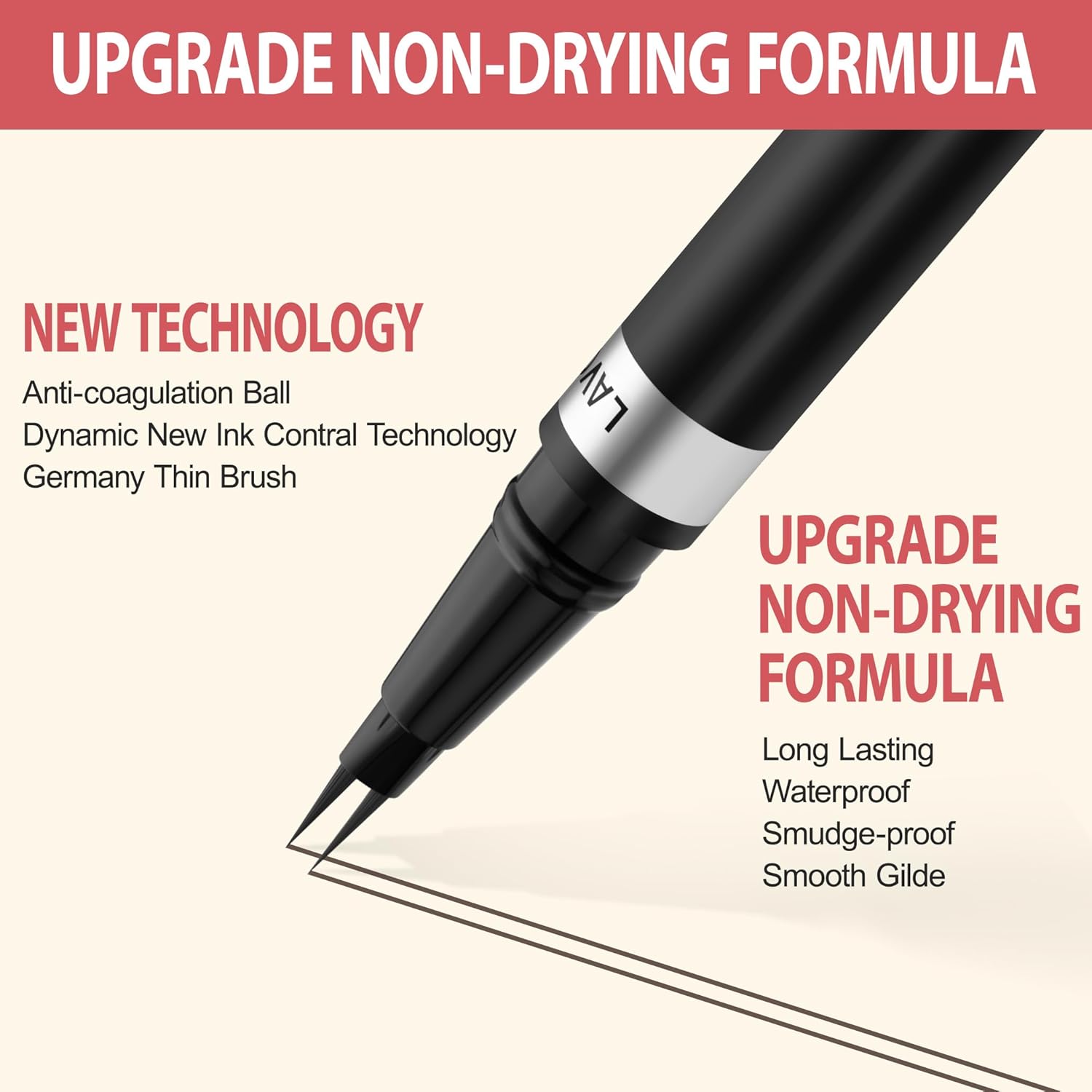 - Waterproof Liquid Eyeliner: LAVONE waterproof liquid eye liner ultra precise tip is flexible and easy to use. Every stroke is unbelievably fluid for a defined finish, the eyeliner pen is glides on smooth. The eyeliner pencil formula is long-lasting, smudge-proof and waterproof, keep in your brows up to 24hours.