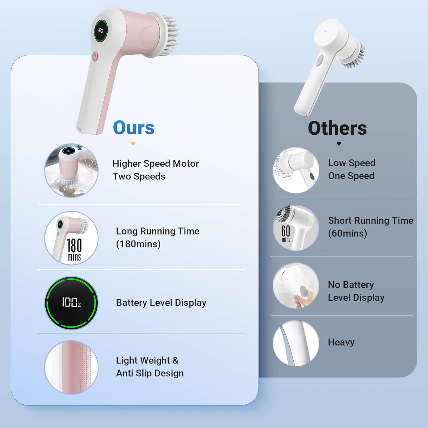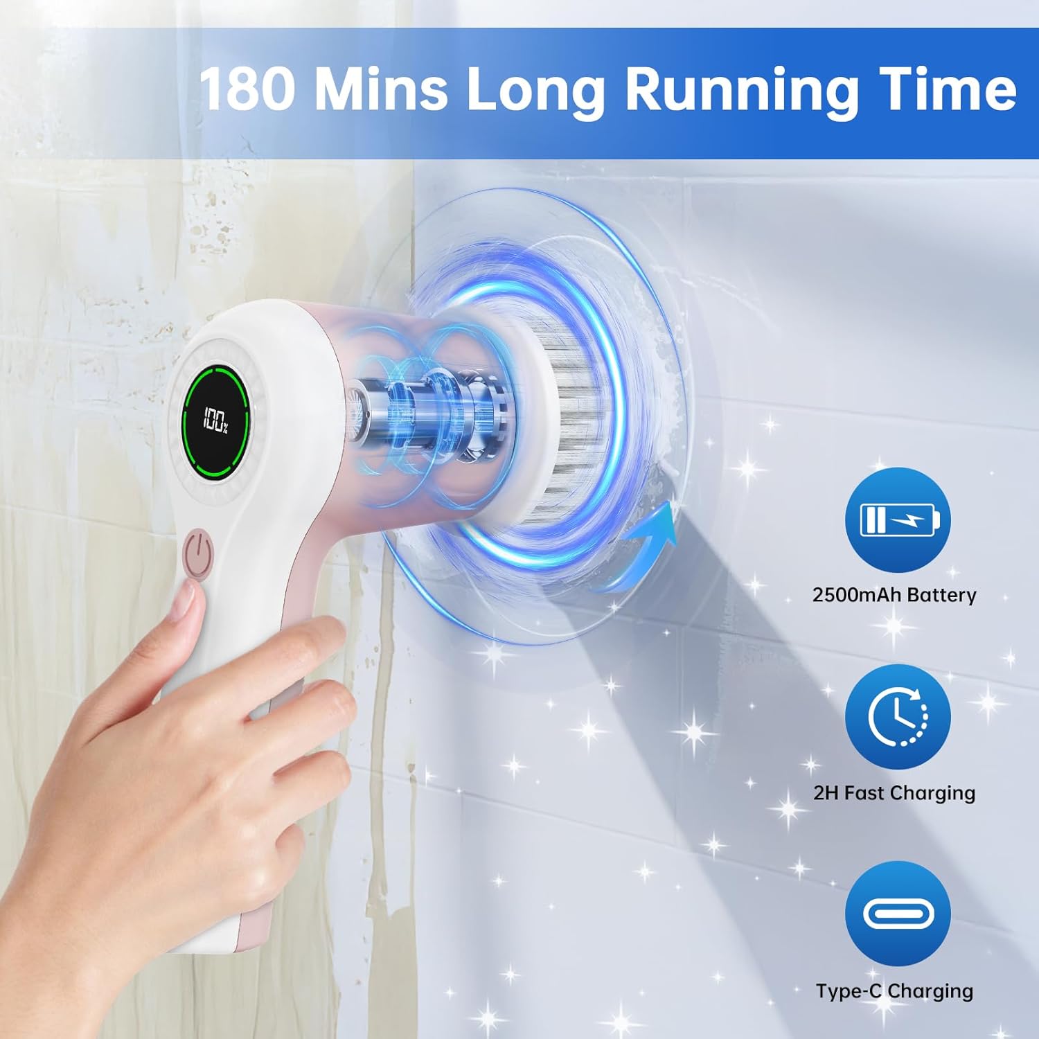 - 6 Replaceable Heads & Easy to Install: This electric scrubber for cleaning comes with 6 replaceable brush heads, catering to all cleaning needs - from bathrooms, bathtubs, and floors to toilets, car wheel hubs, windows, dishes, and more. With a more stable structure, the brush heads and device can be easily and securely installed to avoid brush head fall off while using.