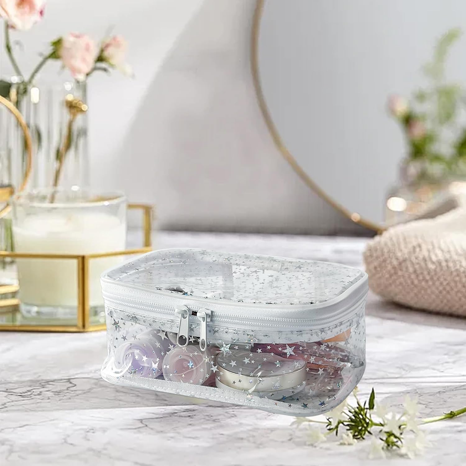 - đ·ăWide Range of UsesăOur transparent holographic cosmetic bag can not only be used as a storage bag,waterproof bag,gift bag,frequently used item bag,but also can be used to store cash,glasses,keys,portable batteries,etc.This waterproof and dustproof tote makeup bag keeps everything safe and prevents liquid leaks
