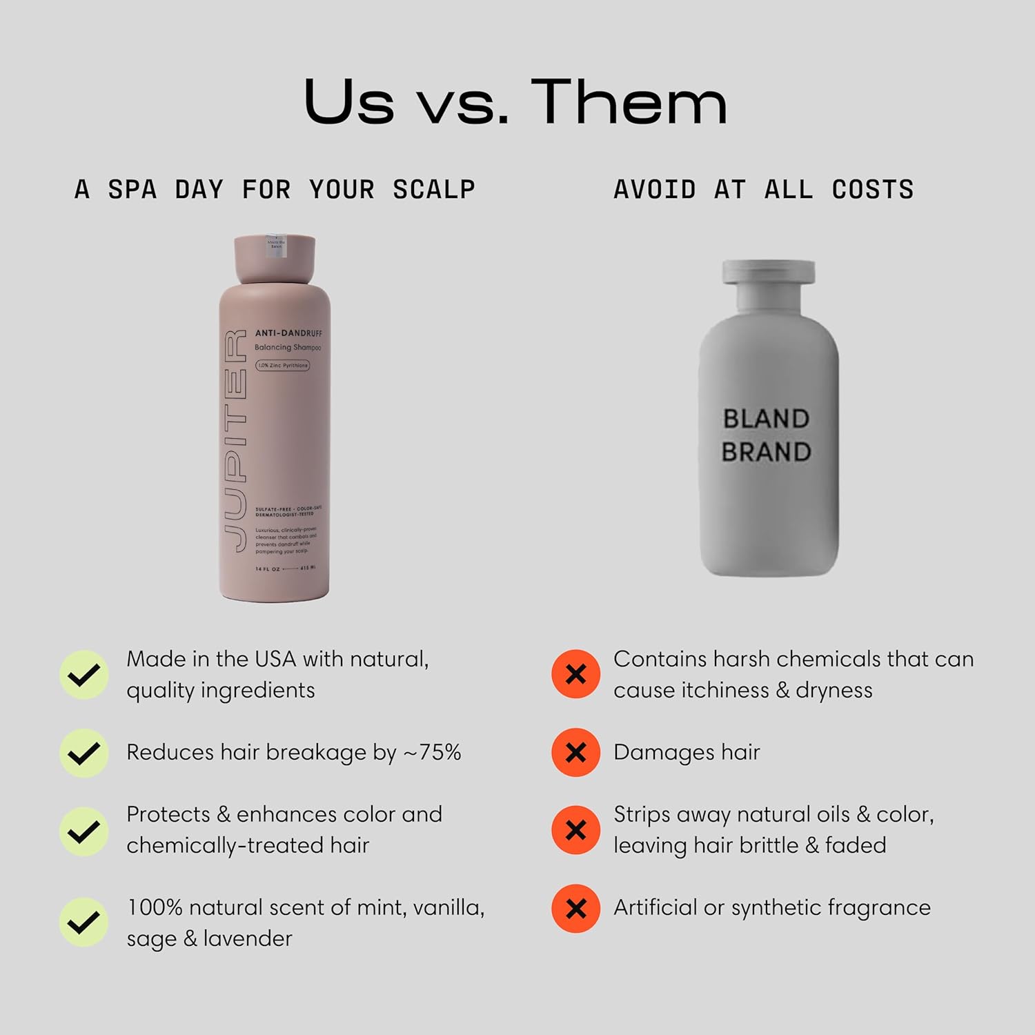 - BUY 2 & SAVE 10%: Powered by clinically proven 1% Zinc Pyrithione, Jupiter dandruff shampoo targets flakes, dryness, and itchiness at the root. Experience Vogue's "Best Dandruff Shampoo" that gently cleanses while restoring balance for a refreshed scalp and healthy-looking hair.