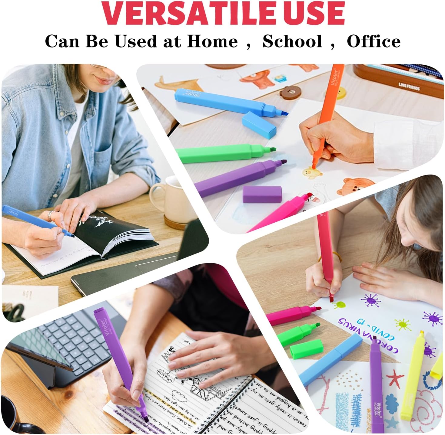 - These cute highlighters are suitable for school, college, home, office, even travel diary, schedule, work, study, notes, etc. They are also wonderful gifts for family and friends.