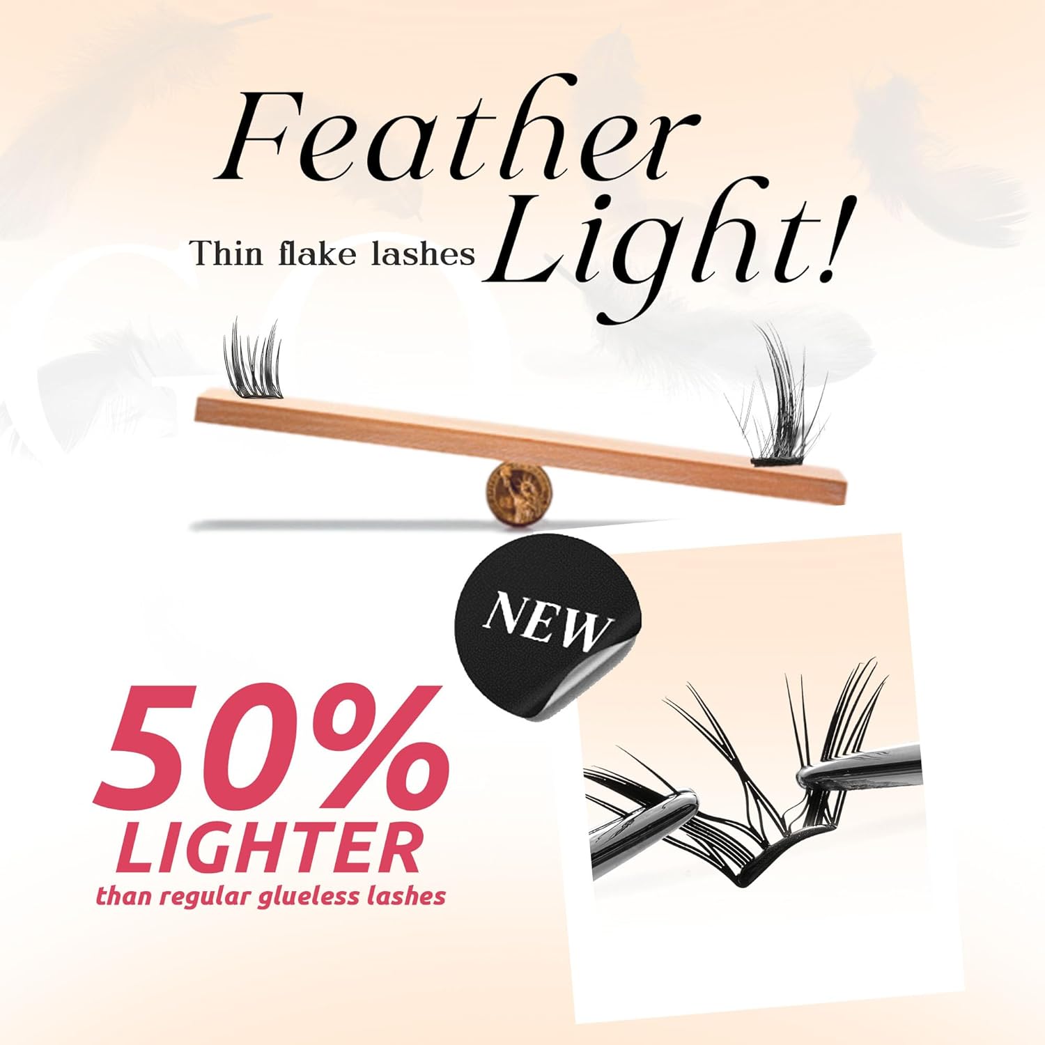 - Lightweight & Comfortable: Innovative one-piece molding technology, 50% lighter than traditional glueless clusters! Ultra-thin, featherlight lash flakes feel weightless all day.