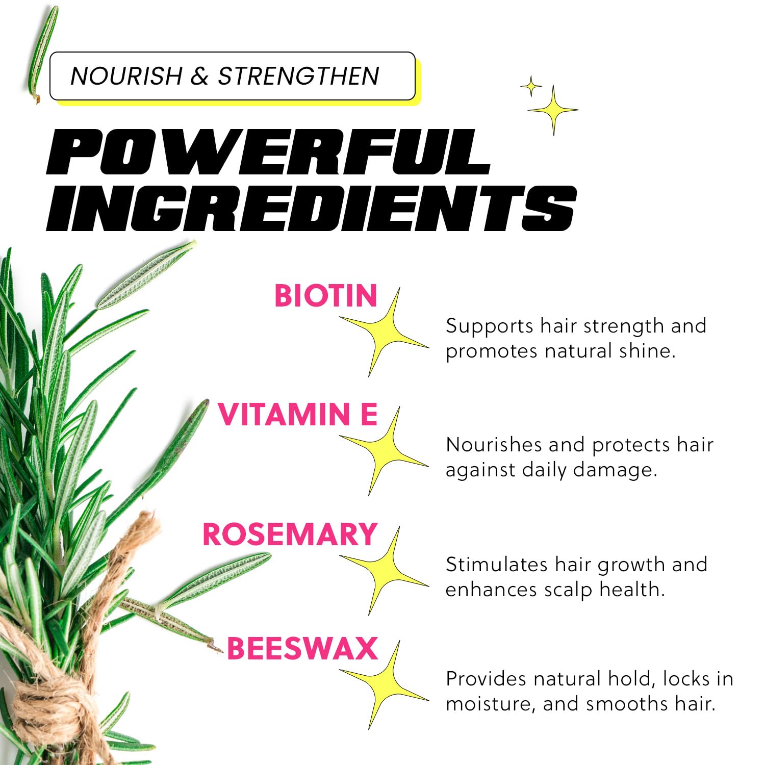 Hair Wax Stick 2.7 fl oz – Strong Hold, Tames Flyaways – Biotin, Vitamin E & Rosemary Formula – Hair Wax Stick for Men & Women, Slick Back Styles, Supports Healthy Hair for All Types