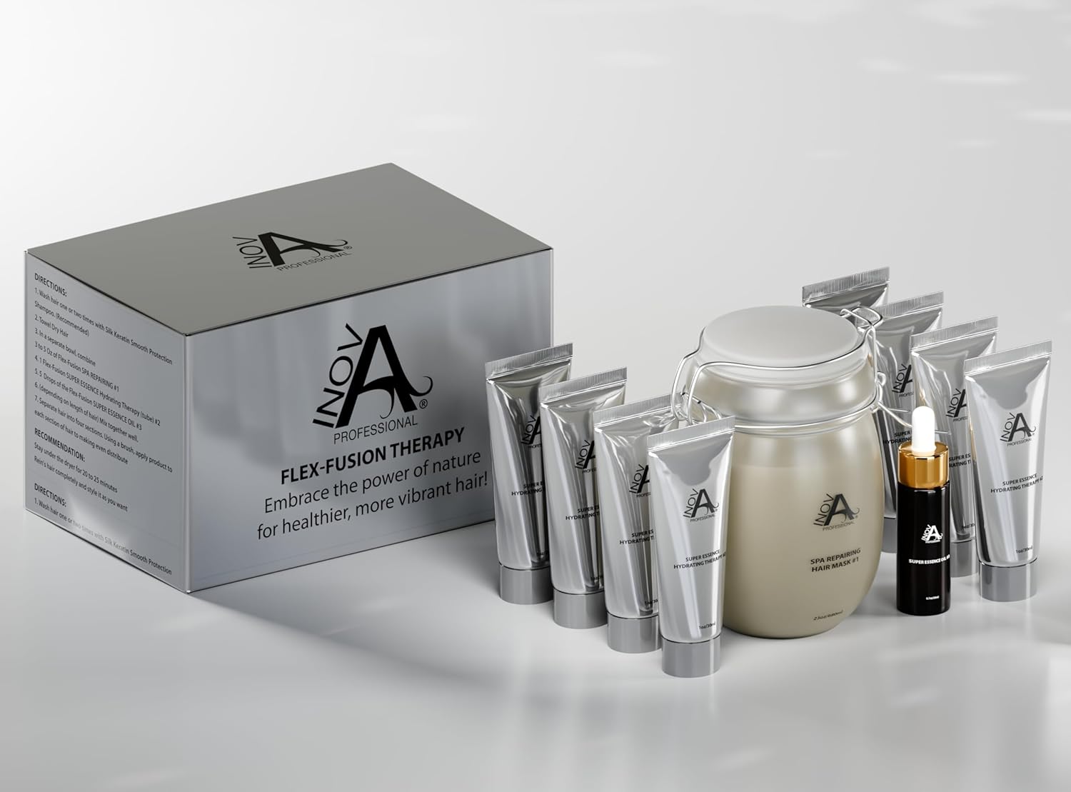 Flex-Fusion Therapy Deep Conditioning Treatment – 8x Custom Hair Repair Treatments – Mixable Masque, Hydrating Essence & Oil – Restores Moisture, Shine & Strength for Damaged Hair