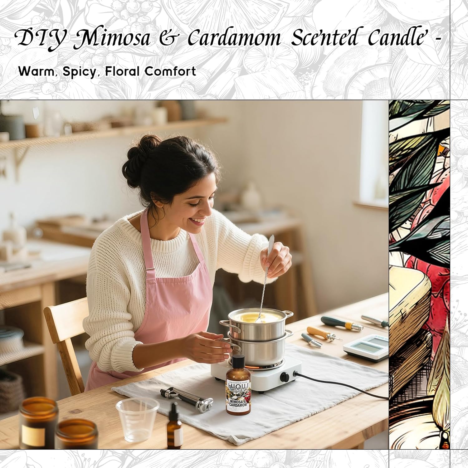 HIQILI Mimosa & Cardamom Fragrance Oil for Candle & Soap Making,Ideal for Essential Oil Diffuser, DIY Perfume, Room Sprays - 1 Fl Oz