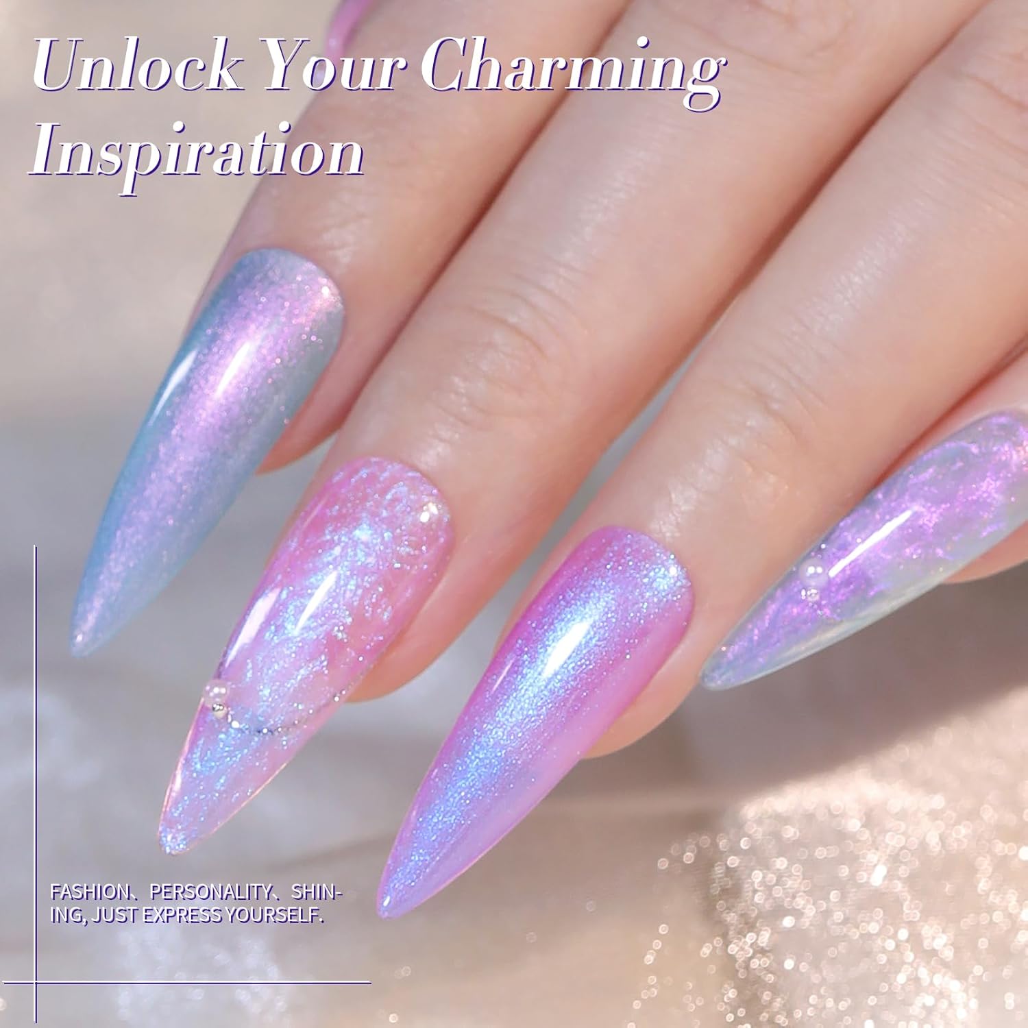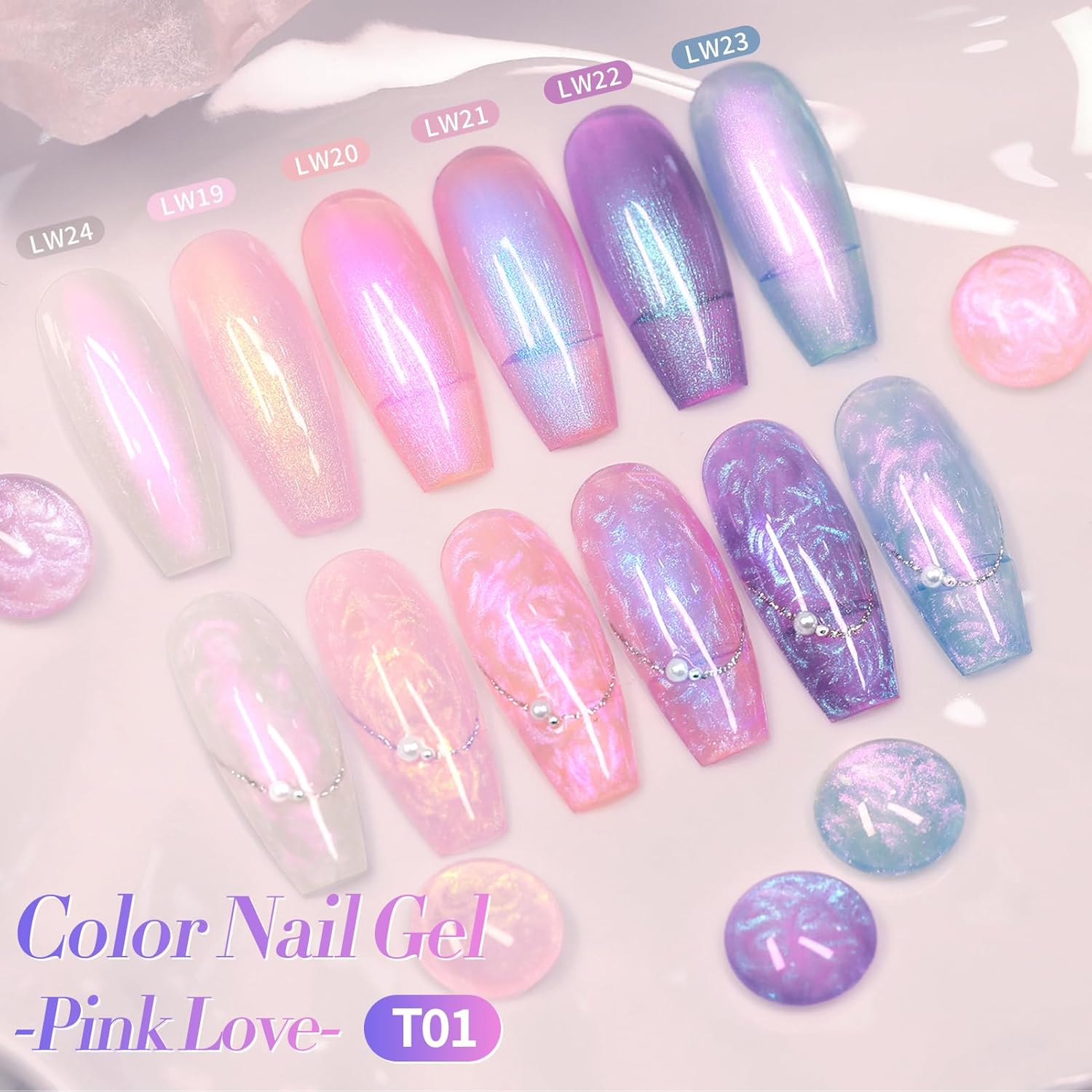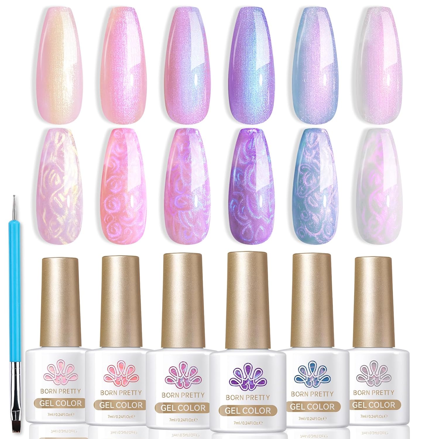 Born Pretty Pearl Gel Nail Polish, 6 Colors Pearl Pink White Purple Shimmer Mermaid Gel Polish Nail Drawing Glitter Polish Soak Off Led Swirl Shell Thread Effect DIY Manicure Gift for Women