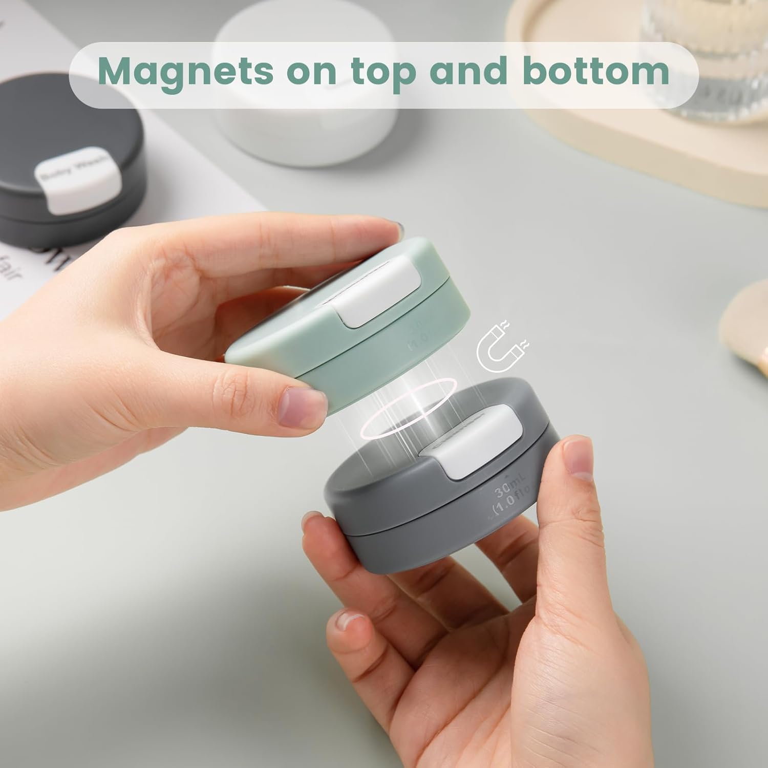 Gemice Travel Containers for Toiletries, Magnetic Travel Containers, TSA Approved Cream Jars with Toiletry Bag, Leak-proof Small 1oz Capsules Set with Multiple Labels for Organization (4 Pack)