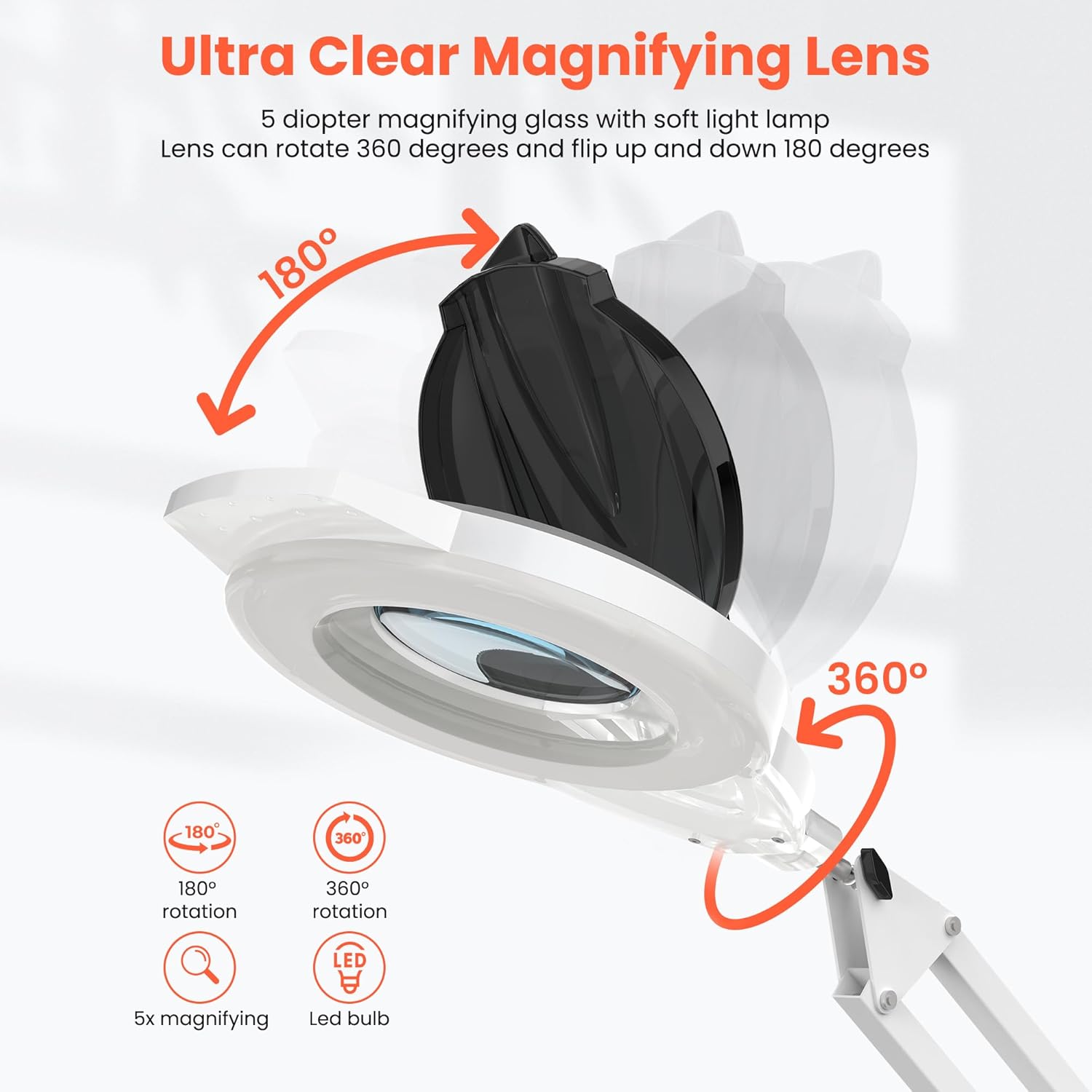 - 5X Magnifying Lamp: Elevate your skincare routine with our LED beauty tool featuring a 5X magnifying lens. Adjust brightness for gentle illumination, protecting your eyes. Enjoy crystal-clear facial magnification, revealing skincare details like never before