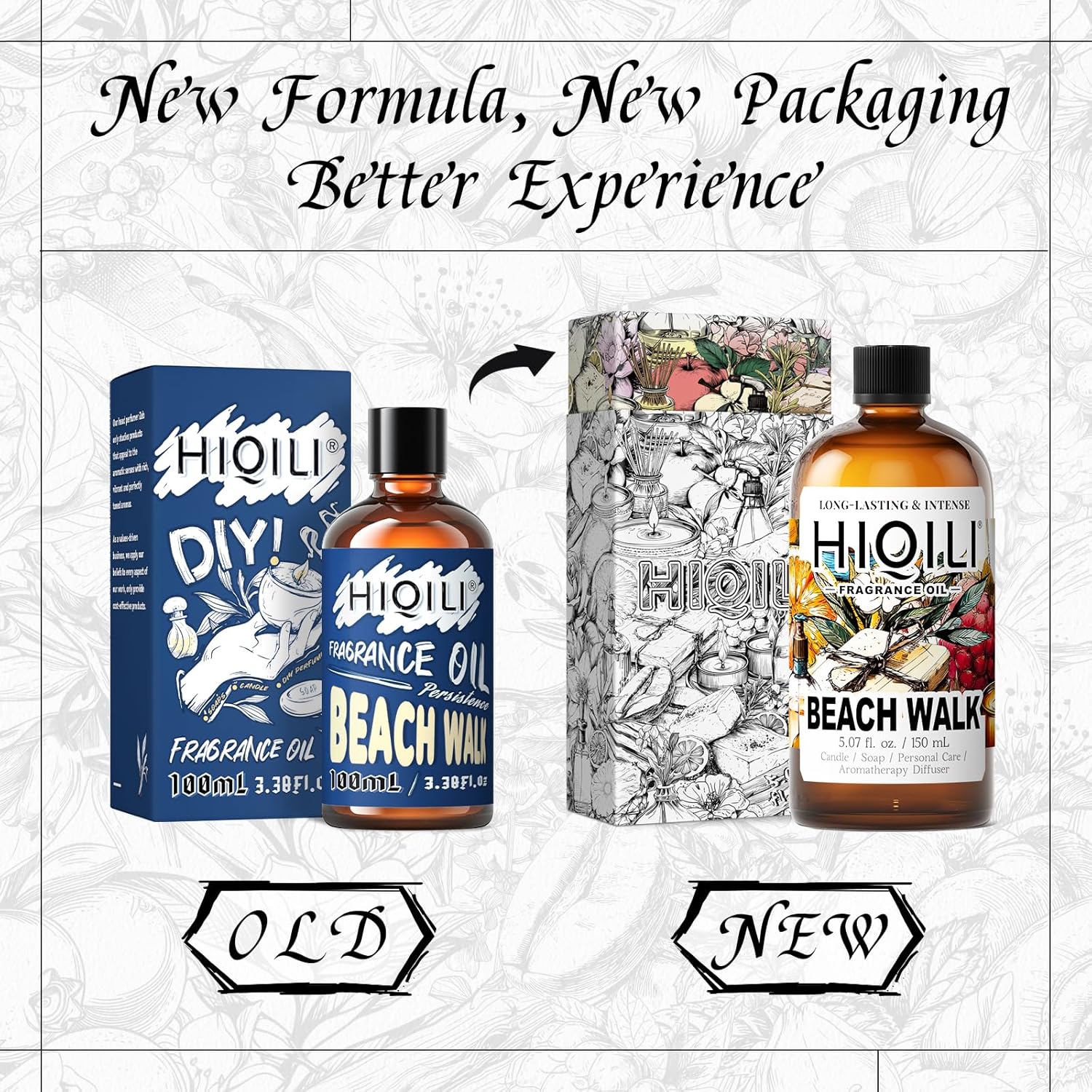HIQILI Beach Walk Fragrance Oil for Diffuser & Humidifier, Candle & Soap Making, Luxury Hotel Scents, Perfect as a Gift - 5.07 Fl Oz