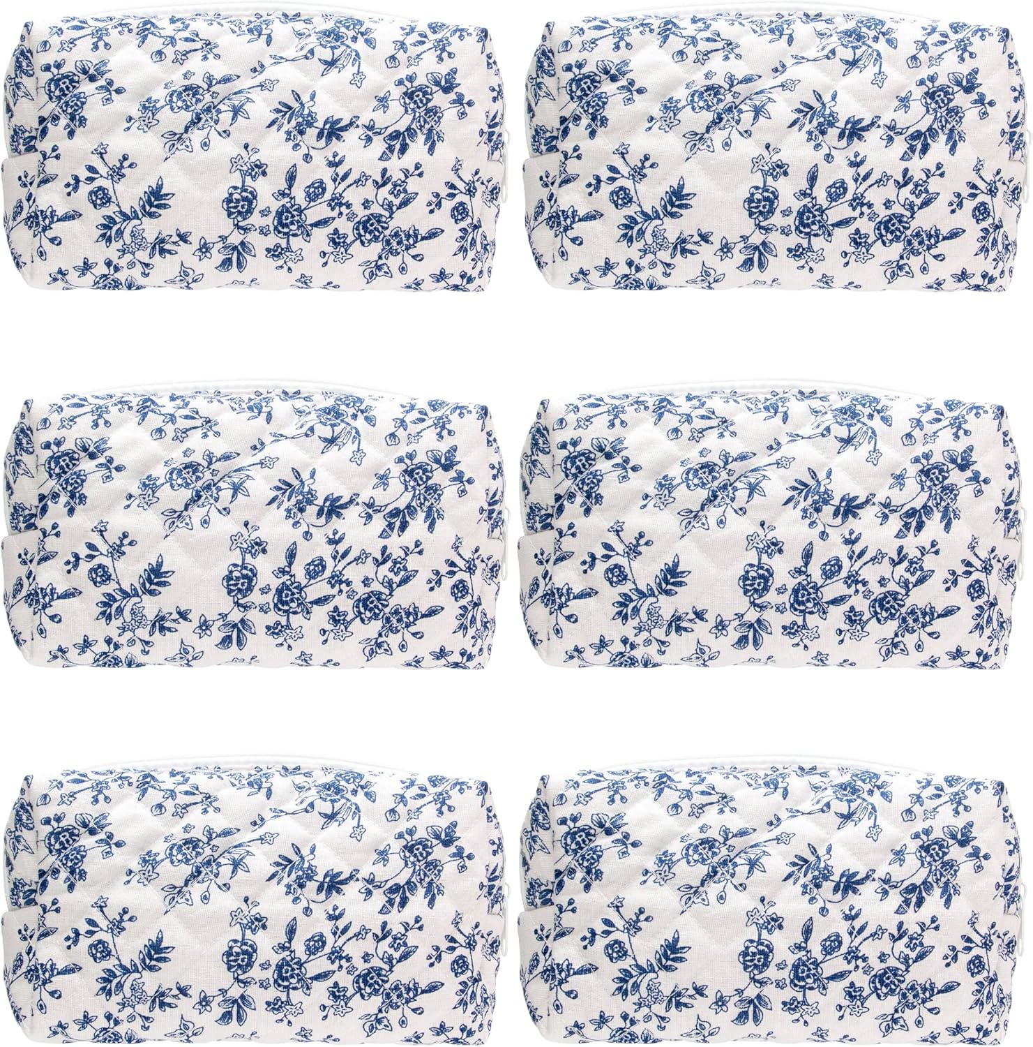 PAZIMIIK 6PCS Vintage Quilted Makeup Bag SET Cosmetic Pouch for Brushes Pencils and Travel Make Up Accessories for Women and Girls Jouy Blue