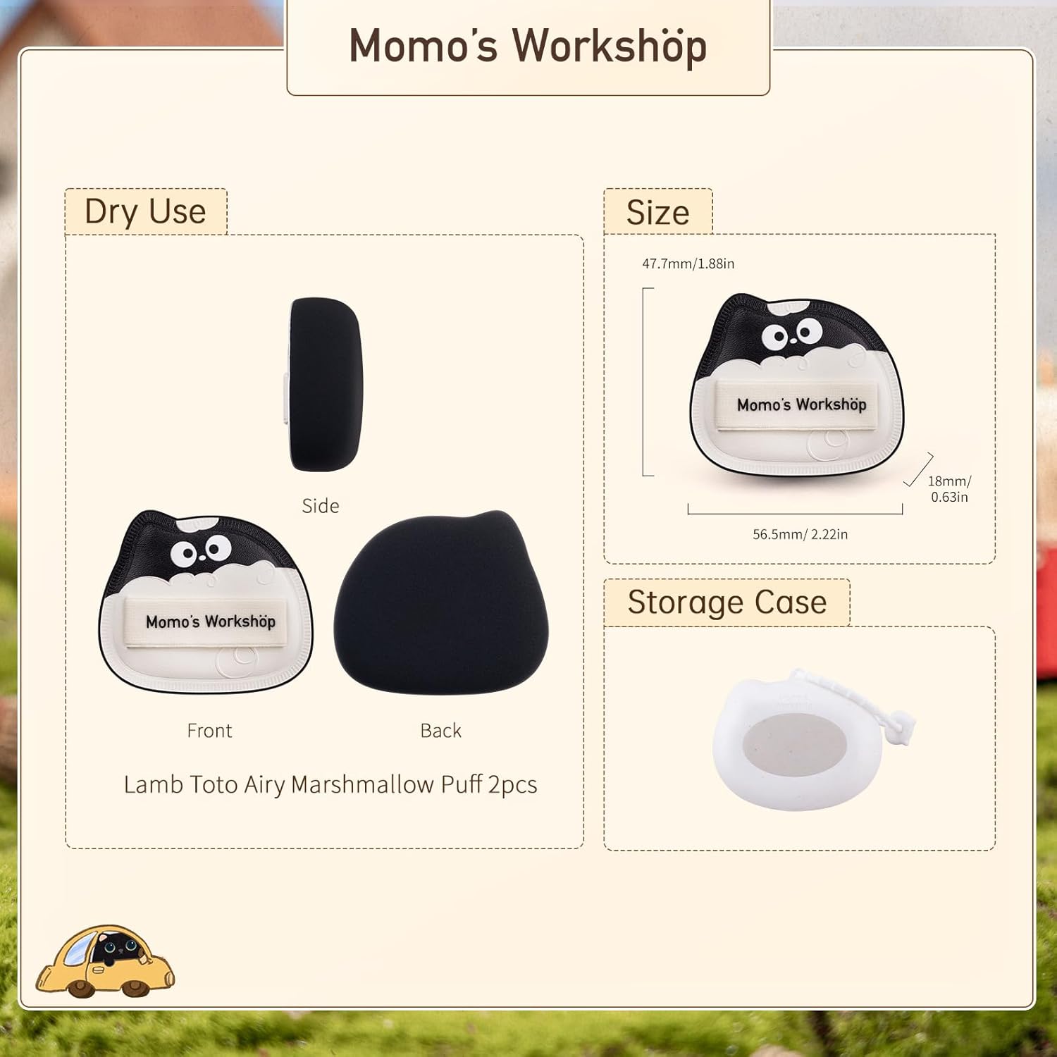Lamb Toto Airy Marshmallow Puff,Makeup Sponge,Rubycell Material,Pointed Tip for Concealer + Flat Side for Foundation, Longwear Makeup, Travel Friendly & Reusable,2pcs Puffs & Storage Case