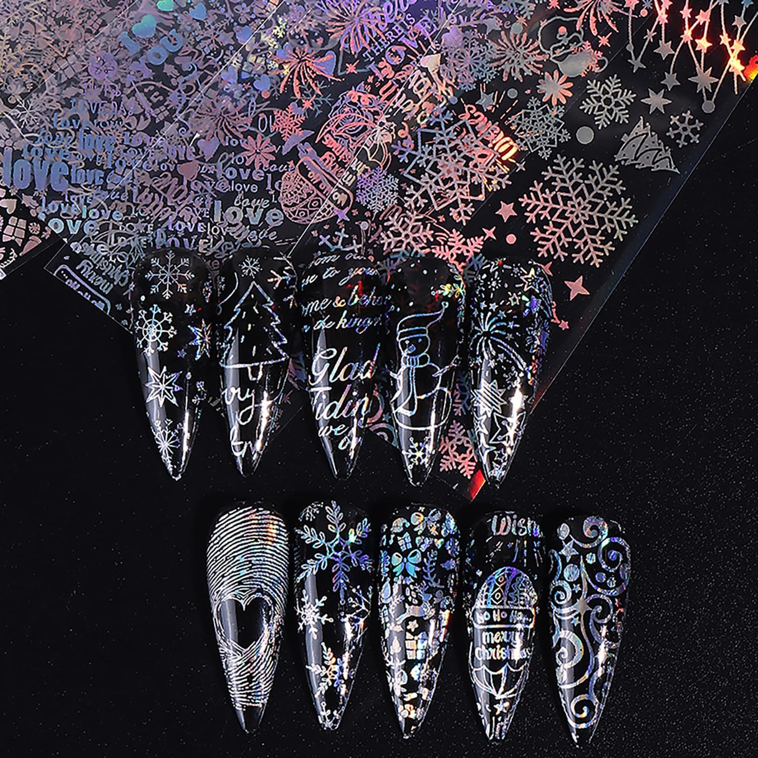 10 Rolls Christmas Nail Foils Transfer Nail Art, Snowflake Nail Transfer Foil Stickers Christmas Theme Design Nails Supplies Christmas Tree Snowman Santa Claus Manicure Decals Cute Nails Accessories